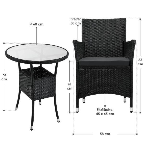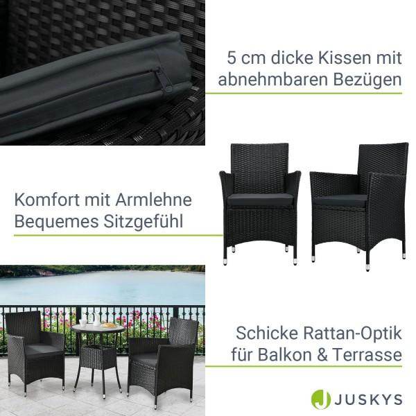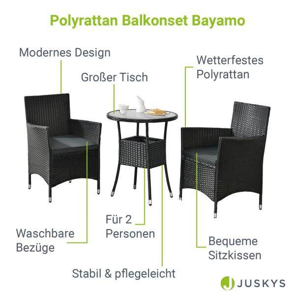 3-tlg Polyrattan Sitzgarnitur Balkon Set Bayamo schwarz / grau
