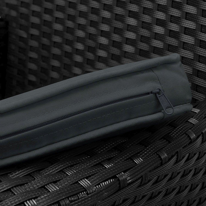 Mit dem Material Polyrattan liegen Sie voll im Trend. Das hochwertige Flechtmaterial erfreut sich immer größerer Beliebtheit und überzeugt mit zahlreichen positiven Eigenschaften. Trotzend gegen Wind und Wetter eignet sich die Kunstfaser optimal für den Einsatz auf Ihrer Terrasse oder im Garten. Die einzigartige Rattan-Optik in schwarz mit Auflagen in grau verleiht Ihren neuen Loungemöbeln einen modernen Charme. Genießen Sie in entspannter Zweisamkeit warme Sommerabende mit einem Glas Rotwein auf Ihrem Balkon.