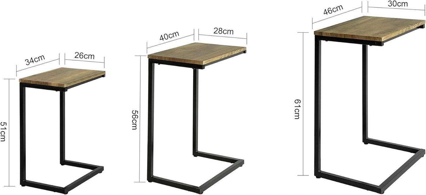 - Sie können die zwei kleineren Beistelltische ganz einfach unter den größeren Haupttisch schieben. So sparen Sie Platz, wenn Sie die Tischchen einmal nicht brauchen.
