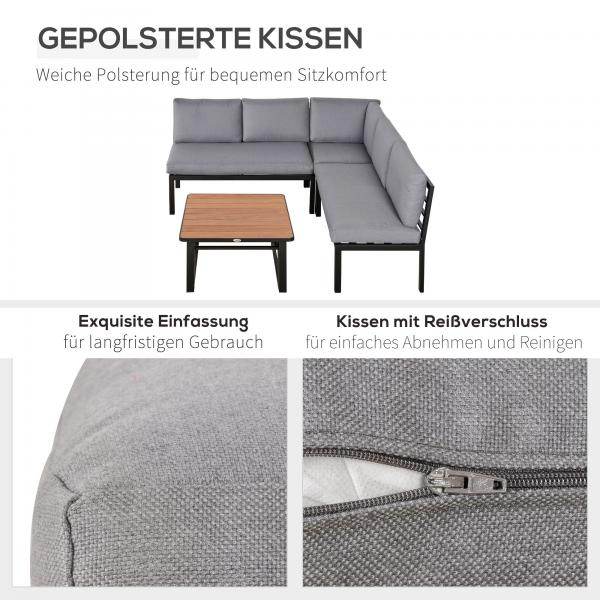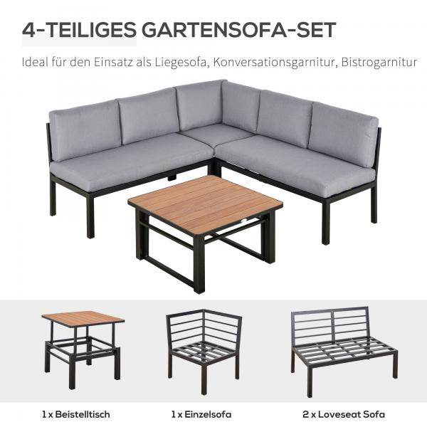 4-tlg. Gartengarnitur Set Sitzgruppe Couchtisch Sofa mit Kissen Aluminium Grau