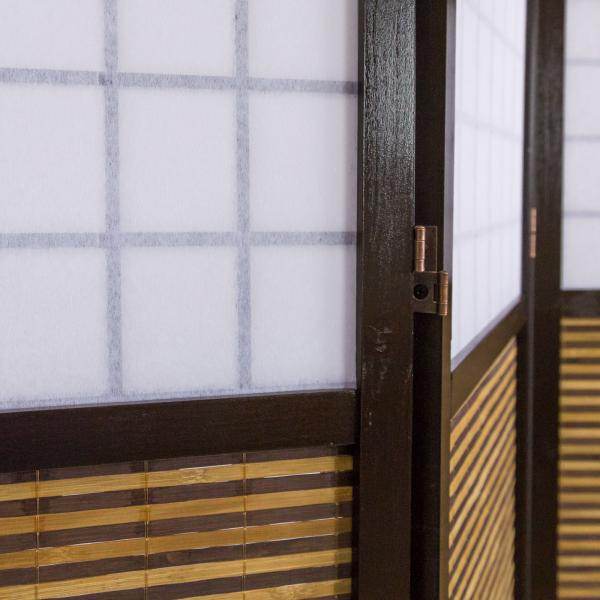 Der Paravant erzeugt durch seine idyllische Optik eine Wohlfühlatmosphäre in jedem Wohnbereich. Das Flair des Raumteilers kann aufgrund der beidseitigen Bespannung rundum wirken. Geschmackvolle Holzstreben verzieren zusätzlich den Innenbereich des Paravants. Das Produkt ist nicht nur ein optisches Highlight, sondern hat als Sichtschutz und Raumtrenner auch eine funktionelle Wirkung. Durch Scharniere, die in beide Richtungen klappbar sind, kann der Paravant sehr leicht genau nach Ihren individuellen Wünschen in den Wohnbereich integriert werden. Sollte er einmal nicht gebraucht werden, lässt er sich problemlos und platzsparend zusammenklappen.