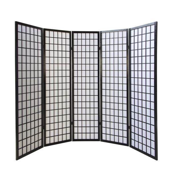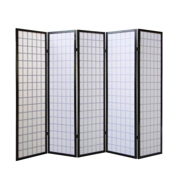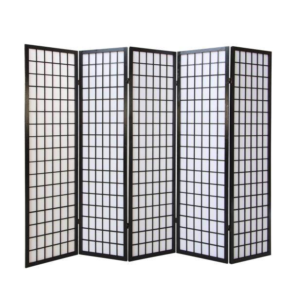 5 fach Holz Paravent Raumteiler Shoji schwarz