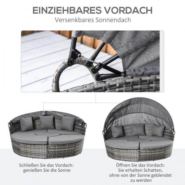 5-tlg. Rattan Sonneninsel Loungegruppe mit Sonnendach grau