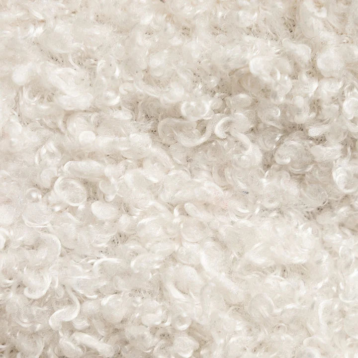 Der strukturierte Bouclé-Bezug fühlt sich angenehm an, ist langlebig und verleiht dem Stuhl eine elegante, moderne Optik.