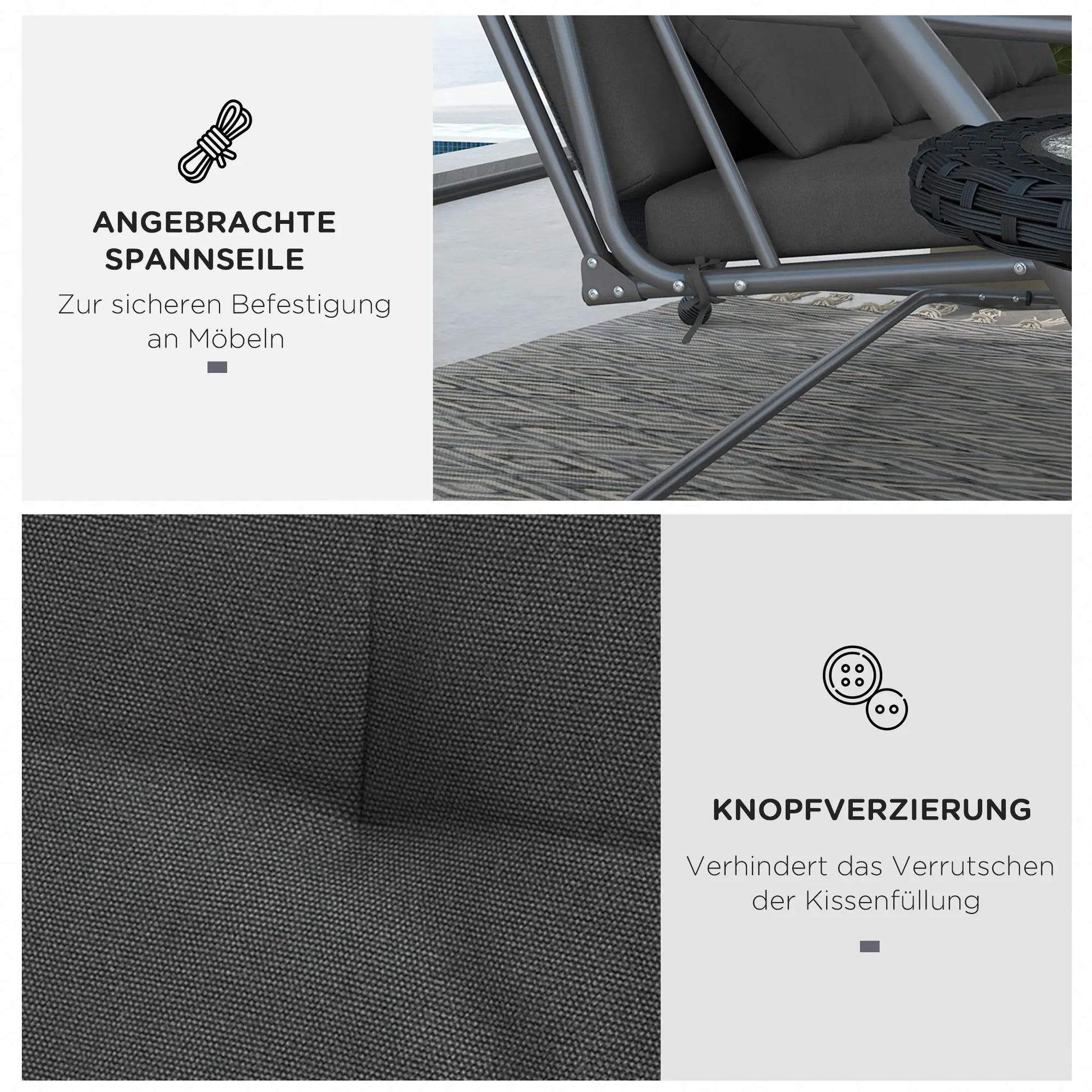 Dieses Sitzkissen von Outsunny ist ein großartiges Zubehör für ihre Schaukelbank. Es bietet zusätzlichen Komfort. Das Obermaterial ist wasserfest und atmungsaktiv. Das Stuhlkissen ist sehr leicht zu reinigen und zu pflegen. Eine weiche Füllung bietet viel zusätzlichen Komfort. Das Kissen ist so konzipiert, dass Sie es sicher an Ihren Außenmöbeln befestigen können, um ein Verrutschen zu vermeiden. Das Tufting verleiht dem Sitzkissen einen einzigartigen Look und verschönert jede Gartenschaukel.