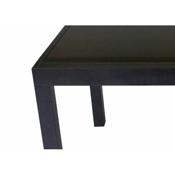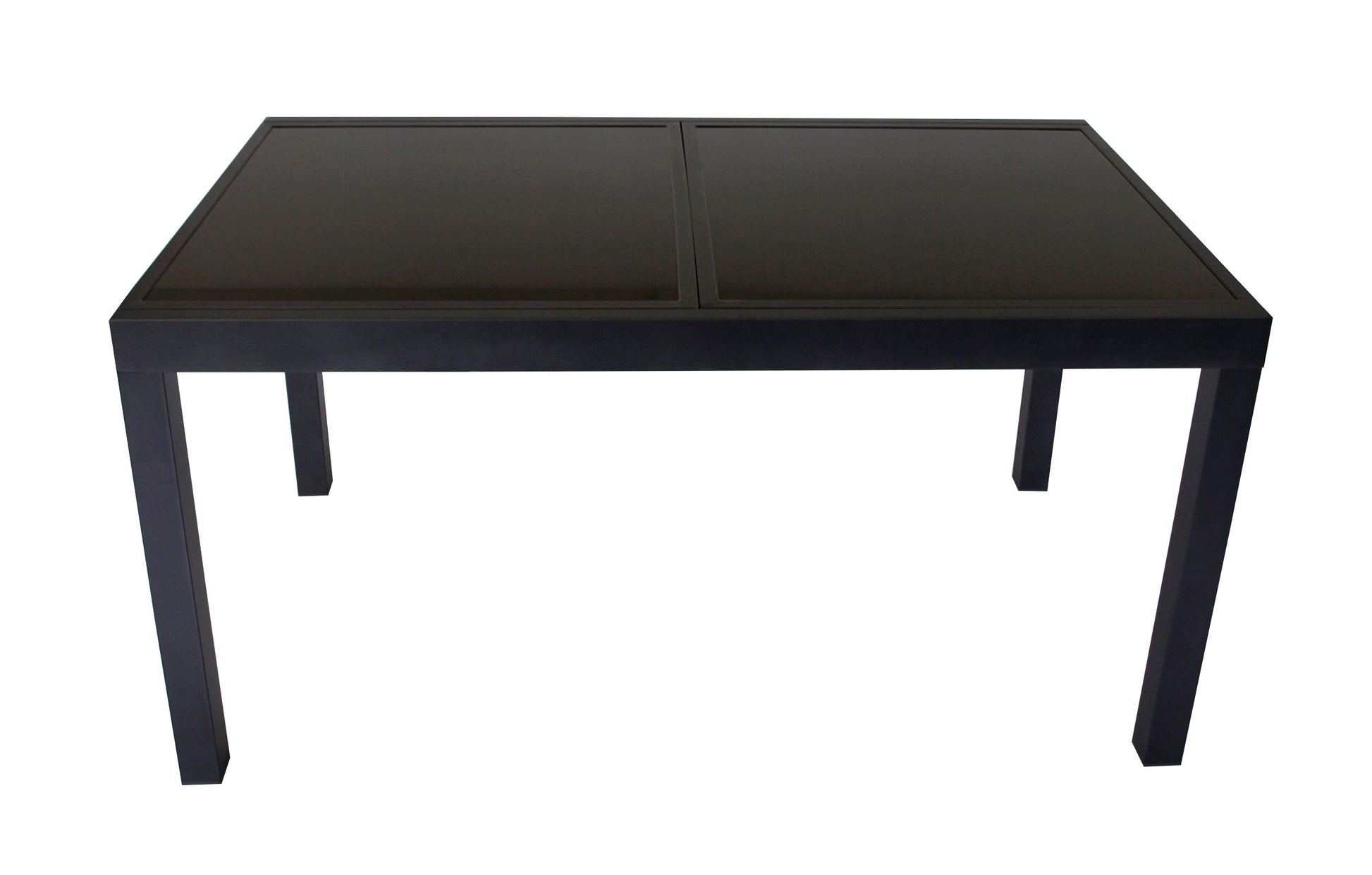 Gestell aus pulverbeschichtetem Aluminium, Farbe: matt - anthrazit. Tischplatten aus Sicherheitsglas, schwarz.