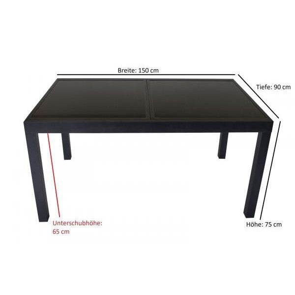 Ausziehtisch TORINO 150/210x90cm, Aluminium + Glas schwarz