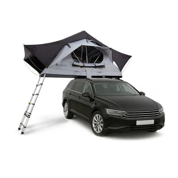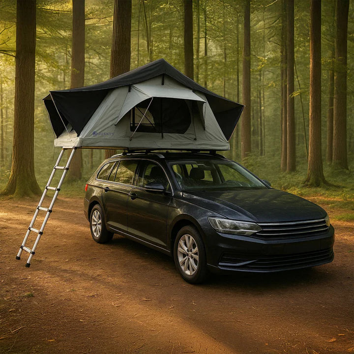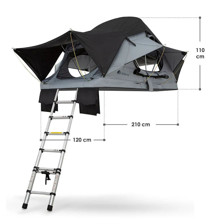Spare dir teure Hotelkosten und schlafe flexibel dort, wo du gerade bist – ganz ohne lästige Hotelsuche. Entdecke das Autodachzelt Lago in Schwarz/Grau – die ideale Lösung für komfortables Camping direkt auf dem Fahrzeugdach. Es passt auf jedes Auto mit Dachträger und bietet Schlafkomfort für bis zu 2 Personen. Die bequeme, herausnehmbare Matratze, der stabile Aluminiumrahmen sowie hochwertige, wasserabweisende Materialien sorgen für Schutz vor UV-Strahlung und Feuchtigkeit. Die praktische Teleskopleiter ermöglicht einen bequemen Einstieg, während das aerodynamische Design wie eine Dachbox auf dem Auto sitzt. Für nächtliche Einsätze ist sogar eine integrierte LED-Beleuchtung an Bord. Perfekt für Roadtrips, Outdoor-Abenteuer oder spontane Wochenendausflüge – mit dem Lago Dachzelt genießt du Freiheit und Komfort, wo auch immer du bist.