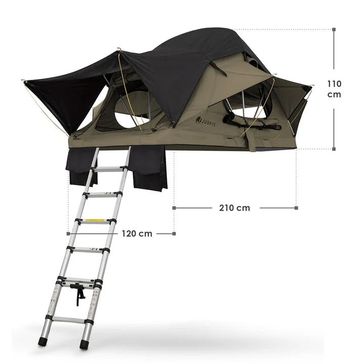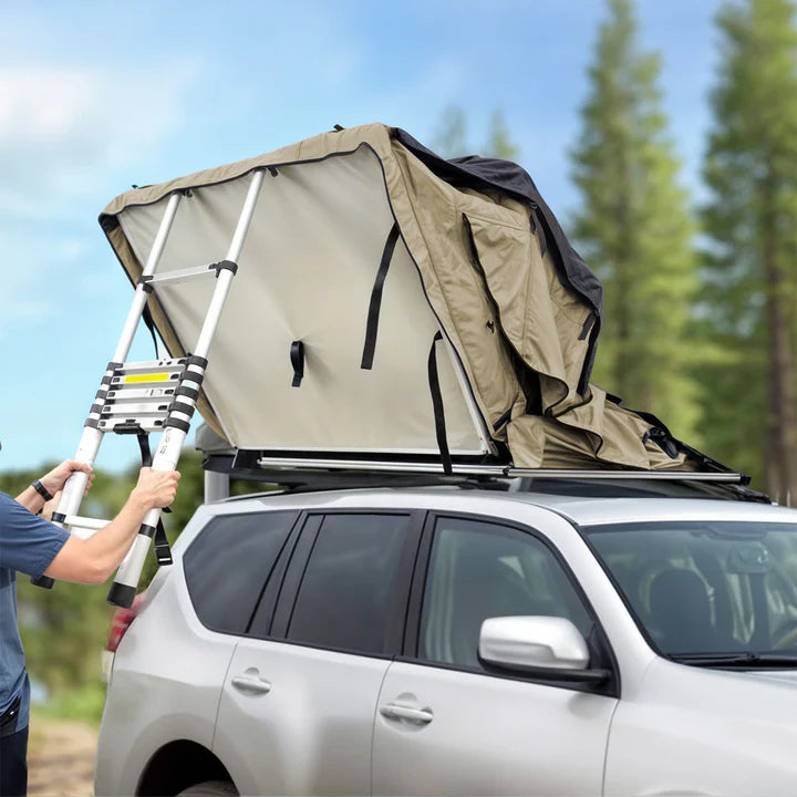 Spare dir teure Hotelkosten und schlafe flexibel dort, wo du gerade bist ganz ohne lästige Hotelsuche. Es passt auf jedes Auto mit Dachträger und bietet Schlafkomfort für bis zu 2 Personen. Die bequeme, herausnehmbare Matratze, der stabile Aluminiumrahmen sowie hochwertige, wasserabweisende Materialien sorgen für Schutz vor UV-Strahlung und Feuchtigkeit. Die praktische Teleskopleiter ermöglicht einen bequemen Einstieg, während das aerodynamische Design wie eine Dachbox auf dem Auto sitzt. Für nächtliche Einsätze ist sogar eine integrierte LED-Beleuchtung an Bord. Perfekt für Roadtrips, Outdoor-Abenteuer oder spontane Wochenendausflüge mit dem Lago Dachzelt genießt du Freiheit und Komfort, wo auch immer du bist.