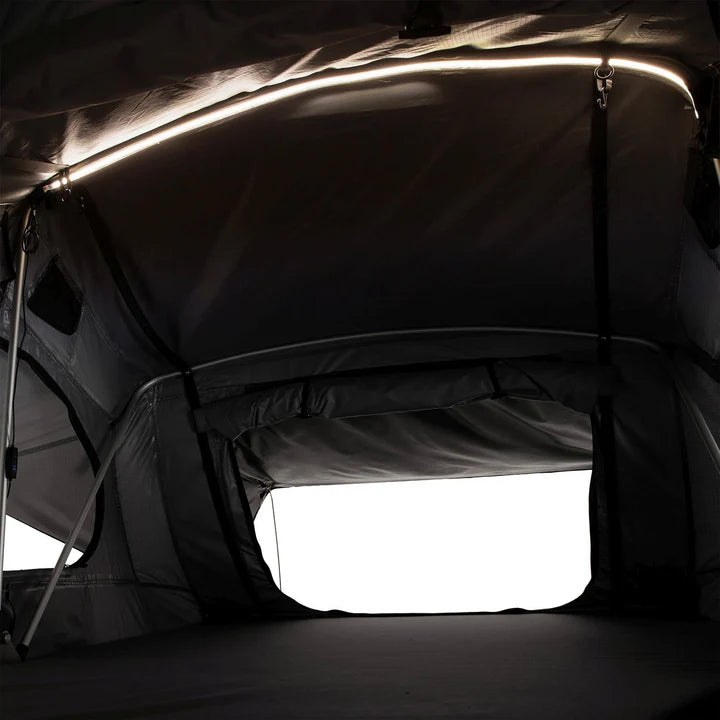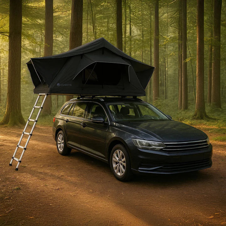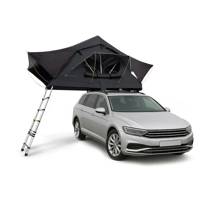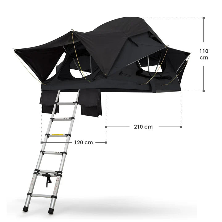 Spare dir teure Hotelkosten und schlafe flexibel dort, wo du gerade bist – ganz ohne lästige Hotelsuche. Entdecke das Autodachzelt Lago in Schwarz – die ideale Lösung für komfortables Camping direkt auf dem Fahrzeugdach. Es passt auf jedes Auto mit Dachträger und bietet Schlafkomfort für bis zu 2 Personen. Die bequeme, herausnehmbare Matratze, der stabile Aluminiumrahmen sowie hochwertige, wasserabweisende Materialien sorgen für Schutz vor UV-Strahlung und Feuchtigkeit. Die praktische Teleskopleiter ermöglicht einen bequemen Einstieg, während das aerodynamische Design wie eine Dachbox auf dem Auto sitzt. Für nächtliche Einsätze ist sogar eine integrierte LED-Beleuchtung an Bord. Perfekt für Roadtrips, Outdoor-Abenteuer oder spontane Wochenendausflüge – mit dem Lago Dachzelt genießt du Freiheit und Komfort, wo auch immer du bist.