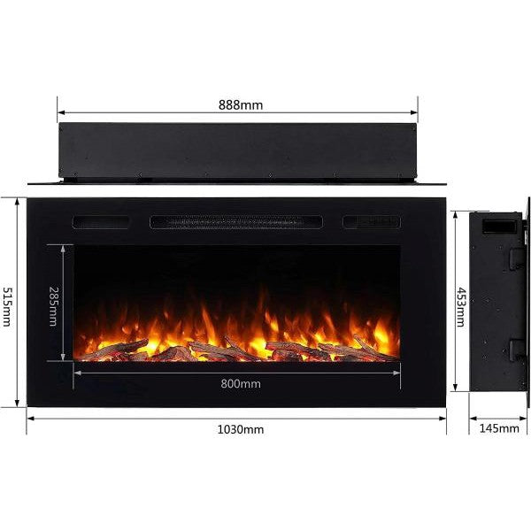 BALDERIA Fiamma 40" Elektrischer Einbaukamin, LED 3D-Flammeneffekt 2000W