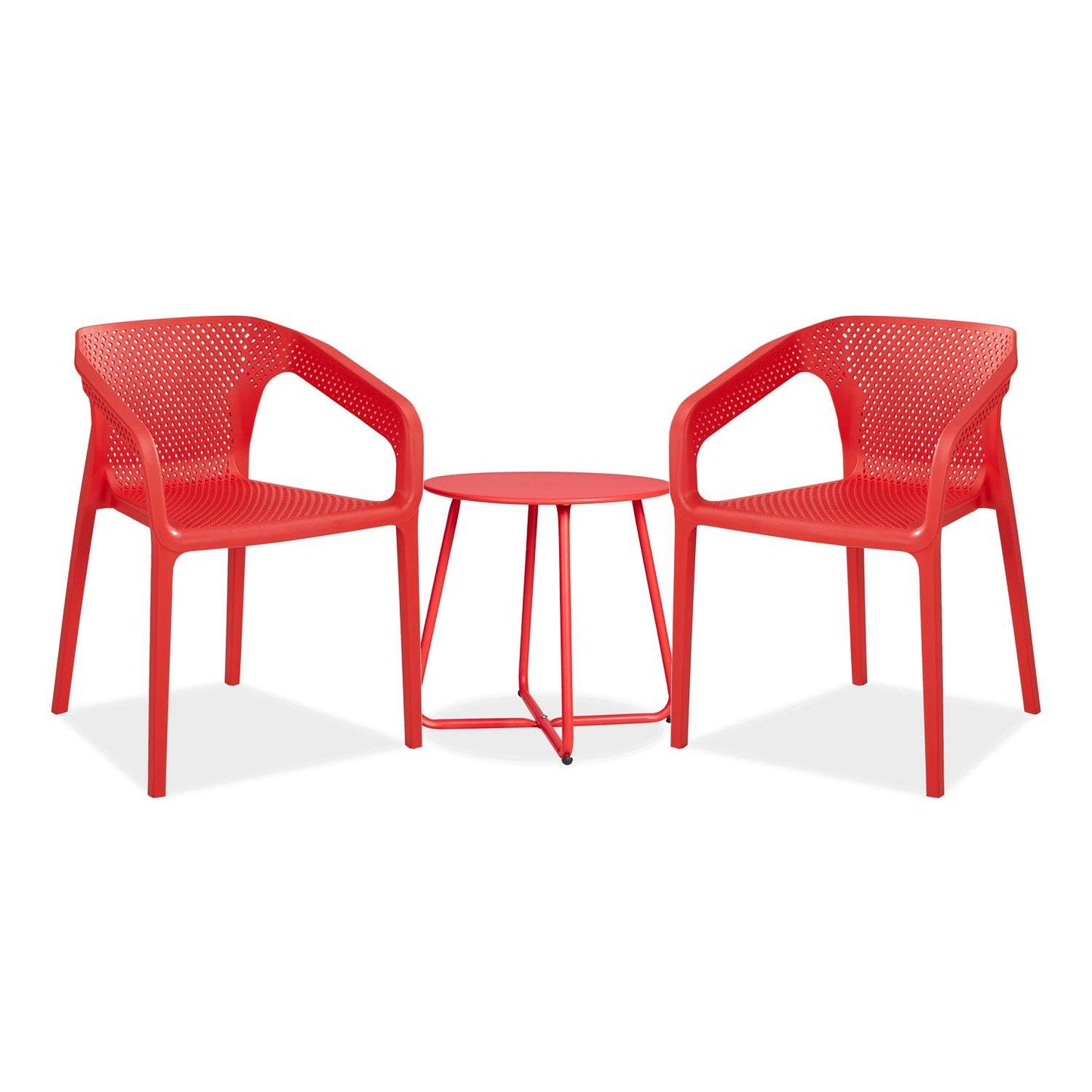 - Garten Sitzgruppe aus Kunststoff und Metall für Garten, Balkon oder Terrasse in Rot