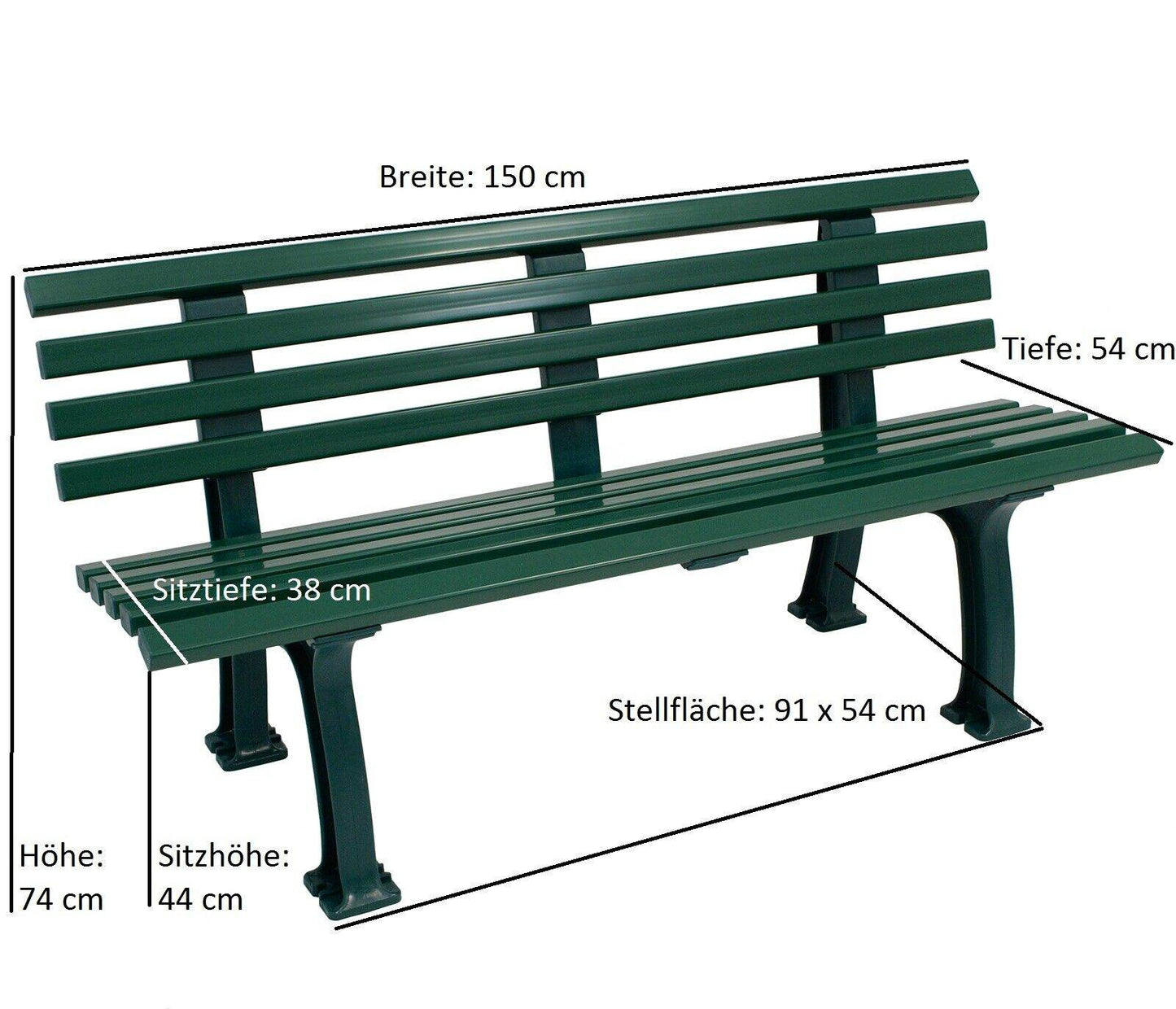 Die Bank ist wartungsfrei und benötigt keine spezielle Pflege: Die Füße sind aus stabilem PP gefertigt und verfügen über Einkerbungen, an denen die Bank im Boden verankert / verschraubt werden kann. Die Latten (9 Mehrkammerprofile 50 x 30 mm) sind aus belastbarem PVC hergestellt.
