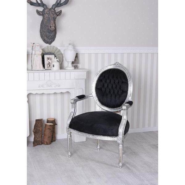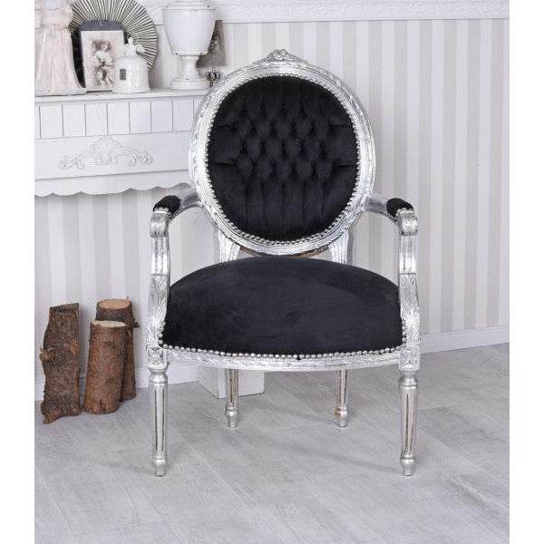 BAROCK SESSEL IM SHABBY CHIC VINTAGE STIL SILBER SCHWARZ
