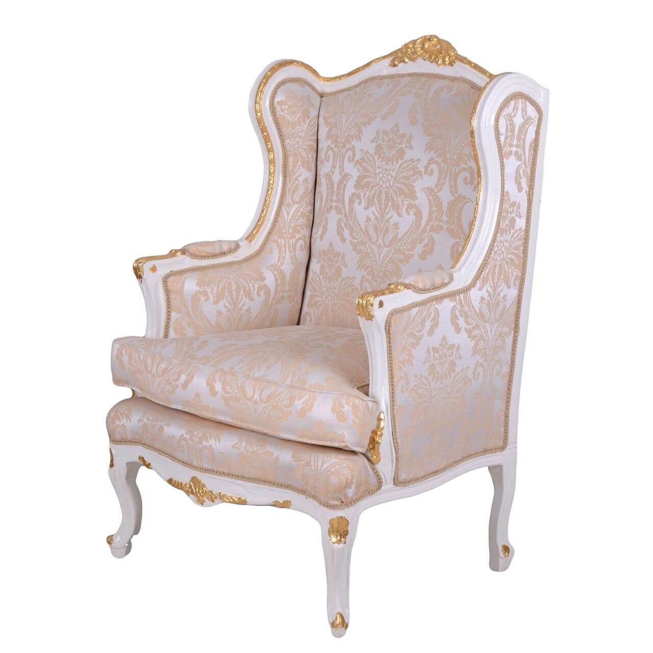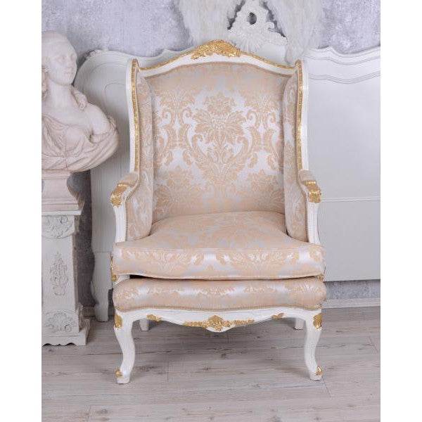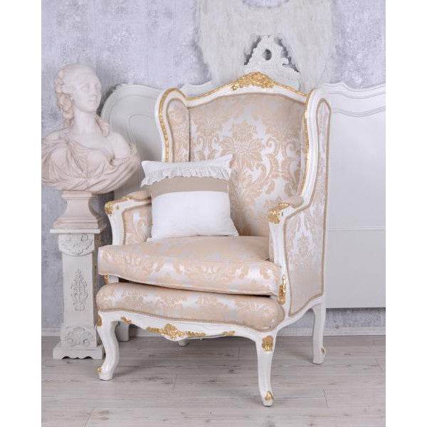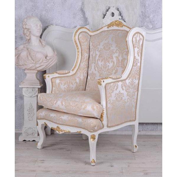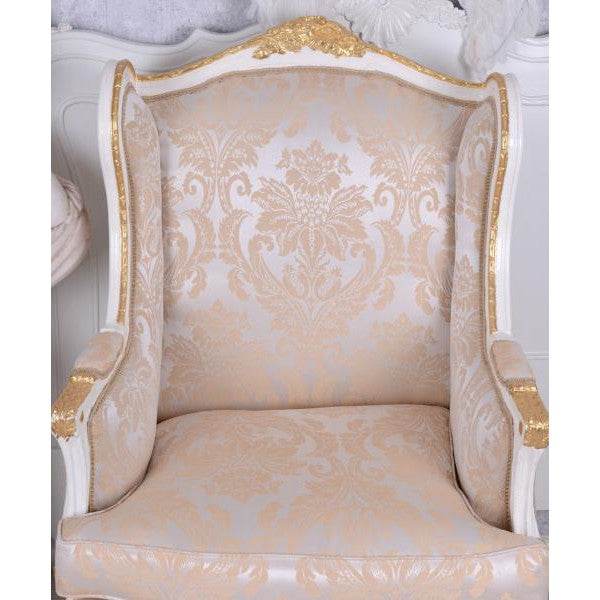 BAROCKER OHRENSESSEL ARMLEHNSESSEL ANTIK CREME-WEISS SILBER-GOLD