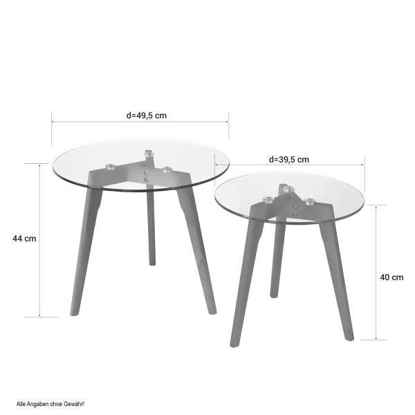 Beistelltisch Couchtisch Glas Rund 2 er Set Wohnzimmertisch