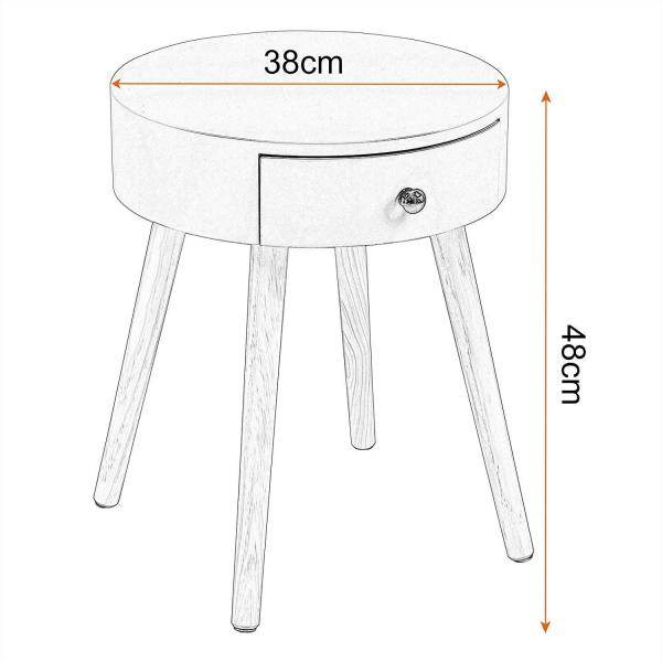 - Platzsparendes und modernes Aussehen: Die Konstruktion aus einem runden Korpus und vier Kiefernholzbeinen nimmt wenig Platz in Anspruch. Das geringe Gewicht von 4 kg erleichtert das Umstellen. Dank des schlichten und eleganten Designs kann das Nachtkästchen zu einem Blickfang in Ihrem Raum werden. Gesamtgröße: 38 x 48 cm (φ x H)