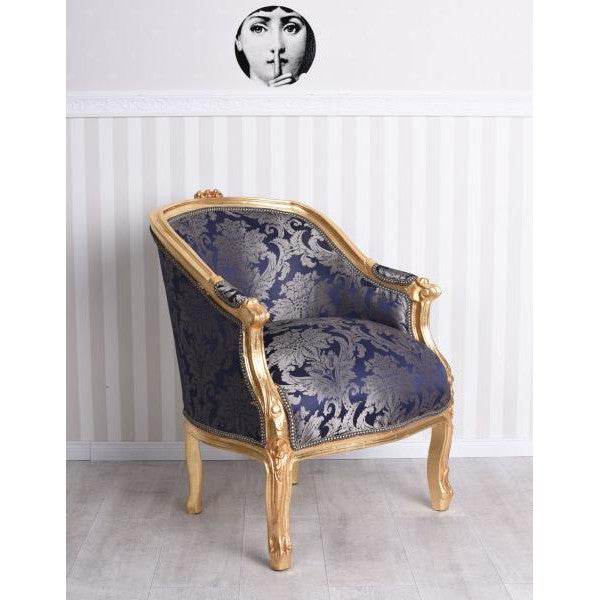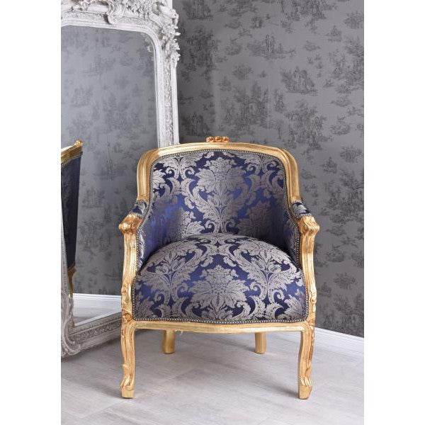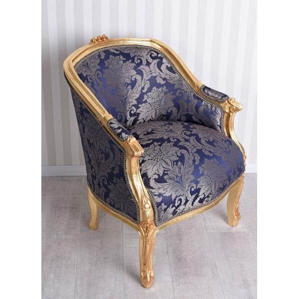 BERGERE EN CONFESSIONAL BAROCK SESSEL BLAU BLUMEN