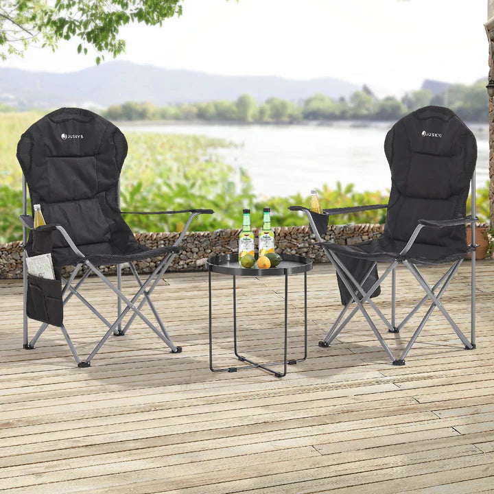 Campingstuhl Lido Schwarz Gepolsterter Klappstuhl mit Getränkehalter & Tasche