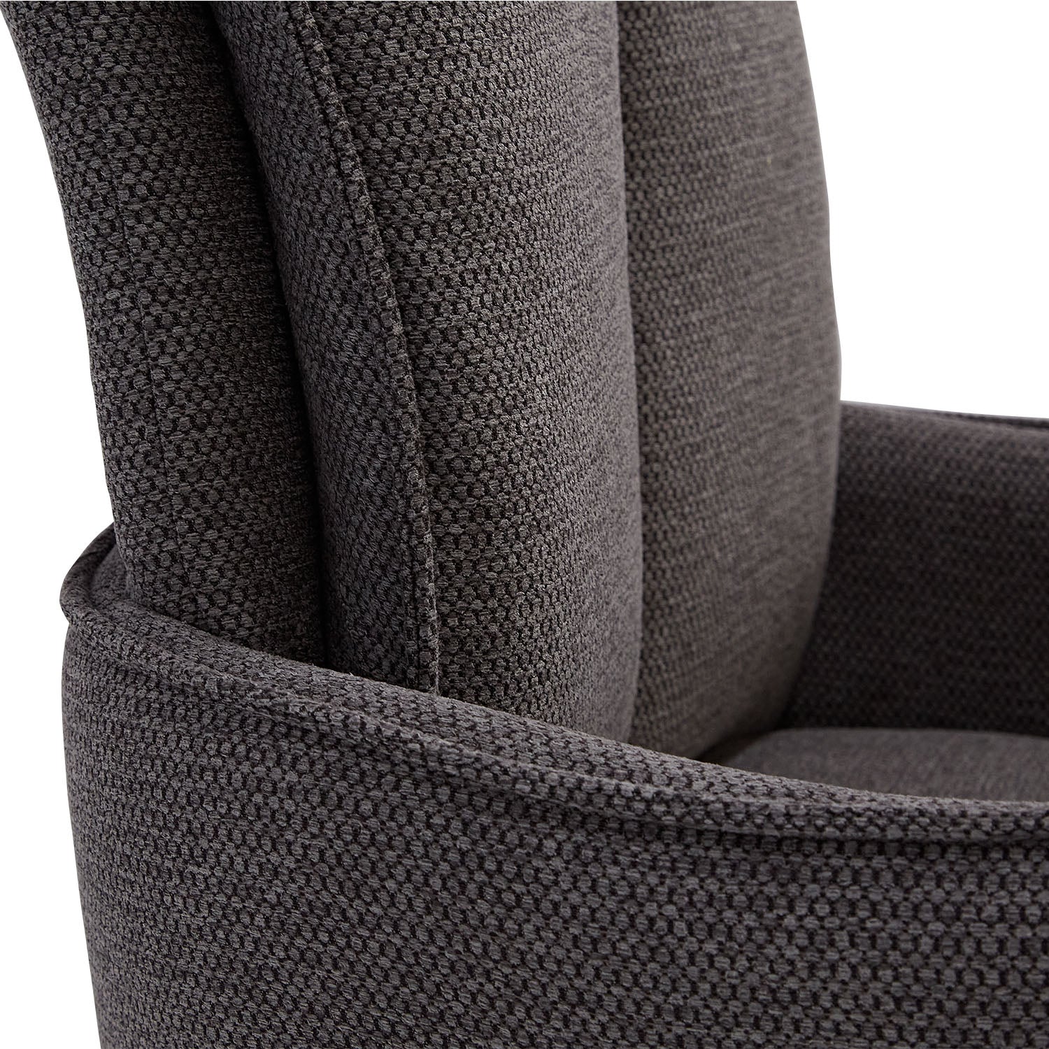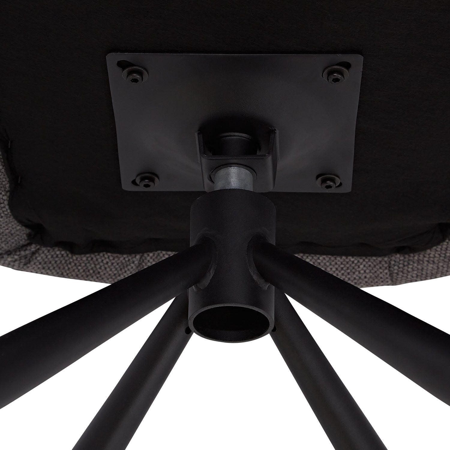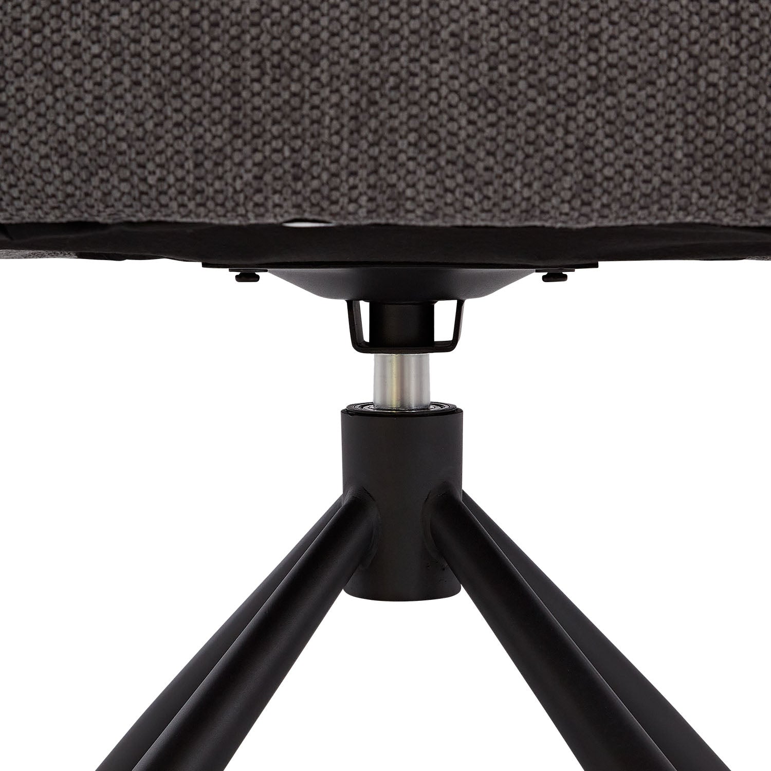 Der strukturierte Stoff verleiht Tiefe, die dezente Polsterung sorgt für echten Komfort. Ob beim Essen, Arbeiten oder Denken mit der 360° Drehfunktion samt Rücklauf bleibst du beweglich, ohne ständig aufzustehen. Das schwarze Metallgestell steht ruhig, trägt zuverlässig und ergänzt das Design mit lässiger Selbstverständlichkeit.
