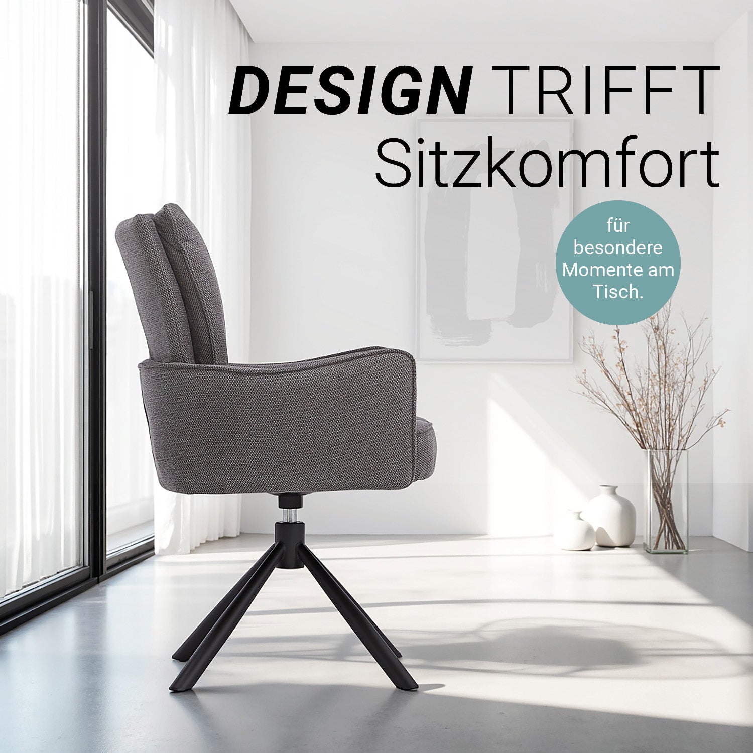 Polsterstuhl Stoff Anthrazit | 4er-Set | drehbar | mit Armlehnen | Küche Esszimmer Büro