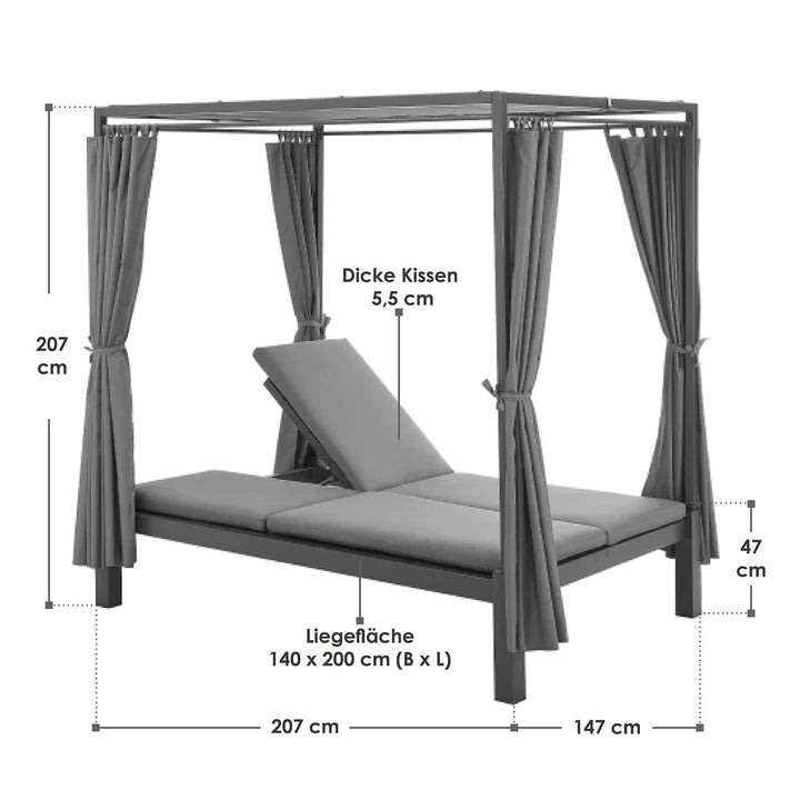 - Gesamtmaße Sonnenliege: 147x207x207cm (BxLxH)