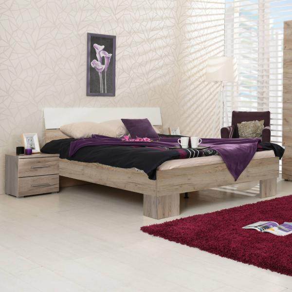- Bettgestell inklusive Rolllattenrost mit Kopfteil in weiß