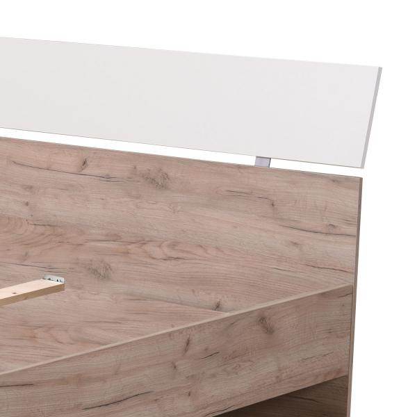 Versinken Sie ins Land der Träume oder machen Sie es sich bei einem spannenden Buch bequem. Beides ist mit unserem massiven Doppelbett kein Problem! Das komfortable Holzbett mit einer Liegefläche von 160x200 cm begeistert vor allem durch seine natürliche Schönheit, das zeitlose Design und die stabile Verarbeitung. Ob im Schlafzimmer, Jugendzimmer oder Gästezimmer - das Bett lässt sich aufgrund seines dezenten Designs perfekt in jeden Schlafraum integrieren. Die Holzmaserung in grauer Eichen Optik ist gut erkennbar und das weiße Kopfteil rundet die stilvolle Aufmachung des Bettgestells ab. Passend zum Bettrahmen gibt es einen Rolllattenrost dazu.