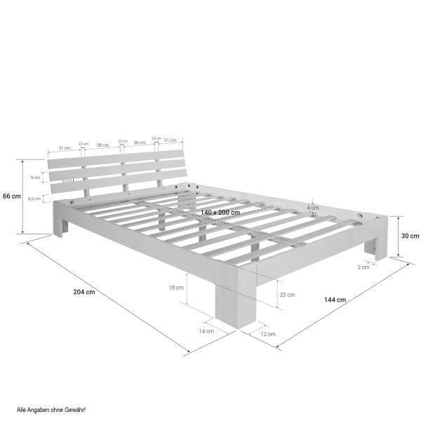 - Bett Außenmaß (B x T): 144 x 204 cm