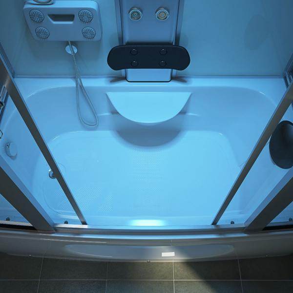 Durch die neue Position bzw. die Form bietet der Innenraum der Dusche mehr Platz. Zudem hat sich der Liegekomfort gesteigert, da der Sitz Sie beim Liegen nicht mehr beeinträchtigt (wie bei ähnlichen Modellen).