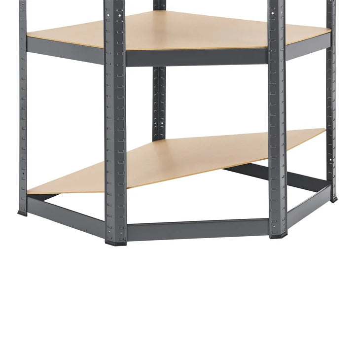 Ob Keller, Garage, Werkstatt oder Abstellkammer – mit dem praktischen Eckregal Corner Easy (Grau) bringen Sie Ordnung in Ihr Leben. Das 75 x 40-75 x 160 cm große Schwerlastregal besteht aus verzinktem Metall und ist mit 4 stabilen Einlegeböden aus MDF-Holz ausgestattet. Ideal für die Aufbewahrung von Werkzeug, Gartenutensilien, Vorräten, Getränken und anderen Gegenständen. Das ausgeklügelte Stecksystem ermöglicht einen schnellen Aufbau ohne Bohren oder Schrauben. Durch die Kunststofffüße bleibt Ihr Fußboden vor unschönen Kratzern verschont.
