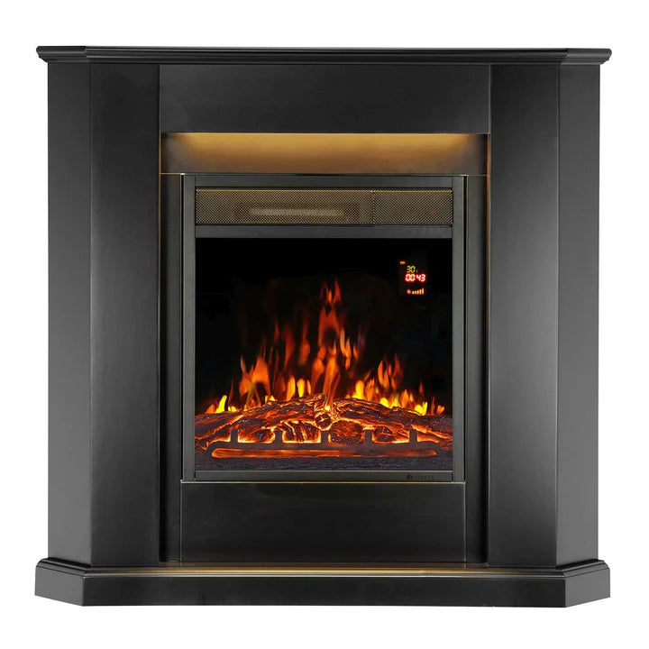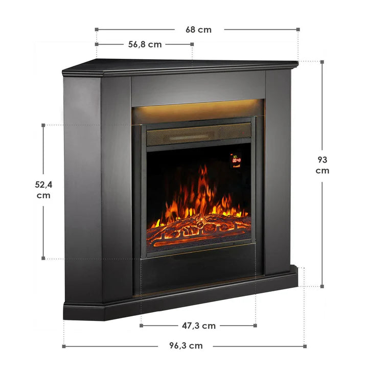 Elektrischer Eckkamin Flammeneffekt Schwarz