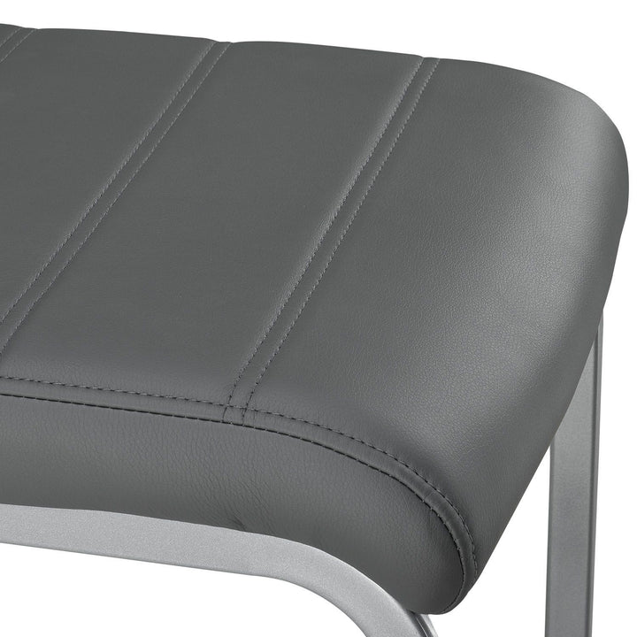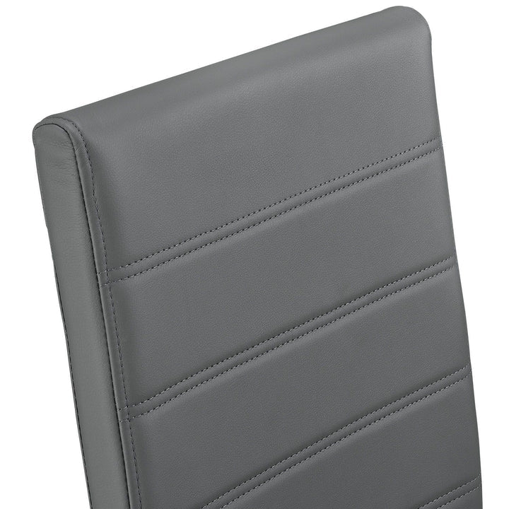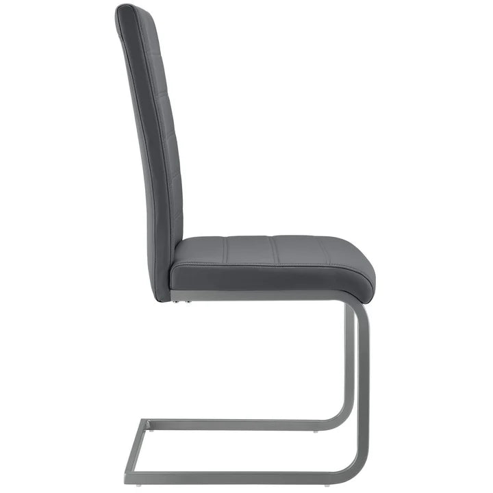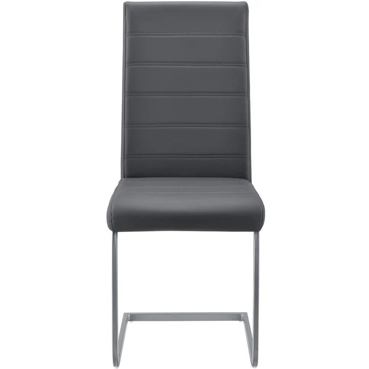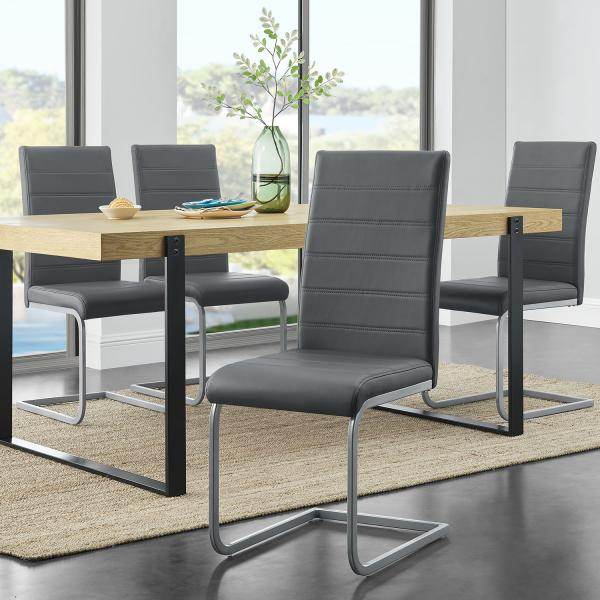 So bringen Sie schnell Stil und Eleganz in Ihr Esszimmer, Küche, Büro oder Wintergarten. In grauer Lederoptik mit gesteppten Ziernähten kombinieren Sie die Esszimmerstühle vielseitig.