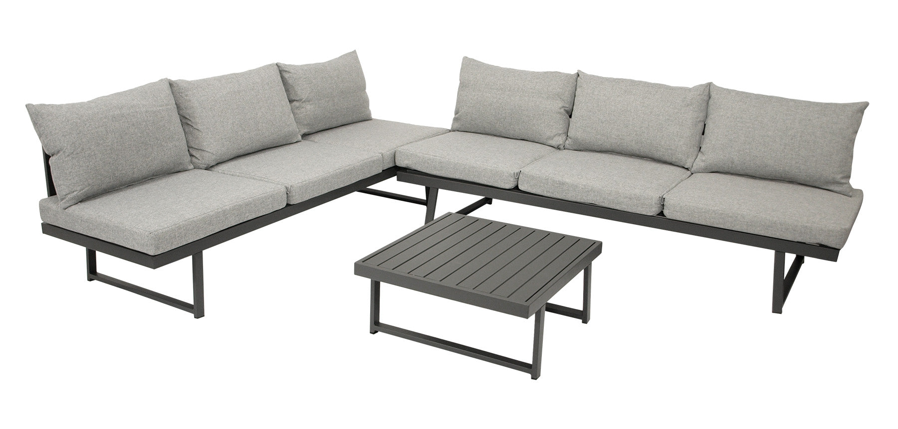 Funktions Lounge Set Gartengarnitur BOGOTA, Aluminium matt-grau, Polster hellgrau