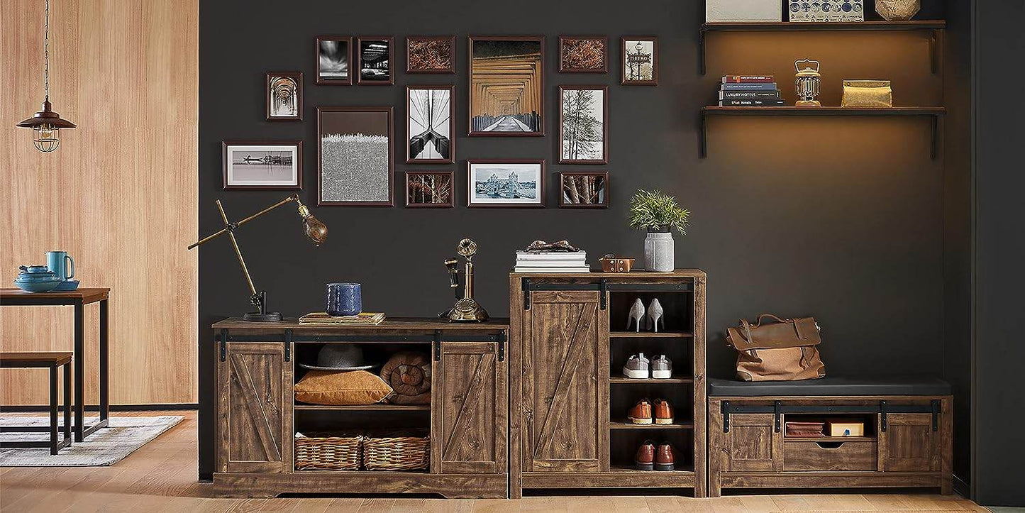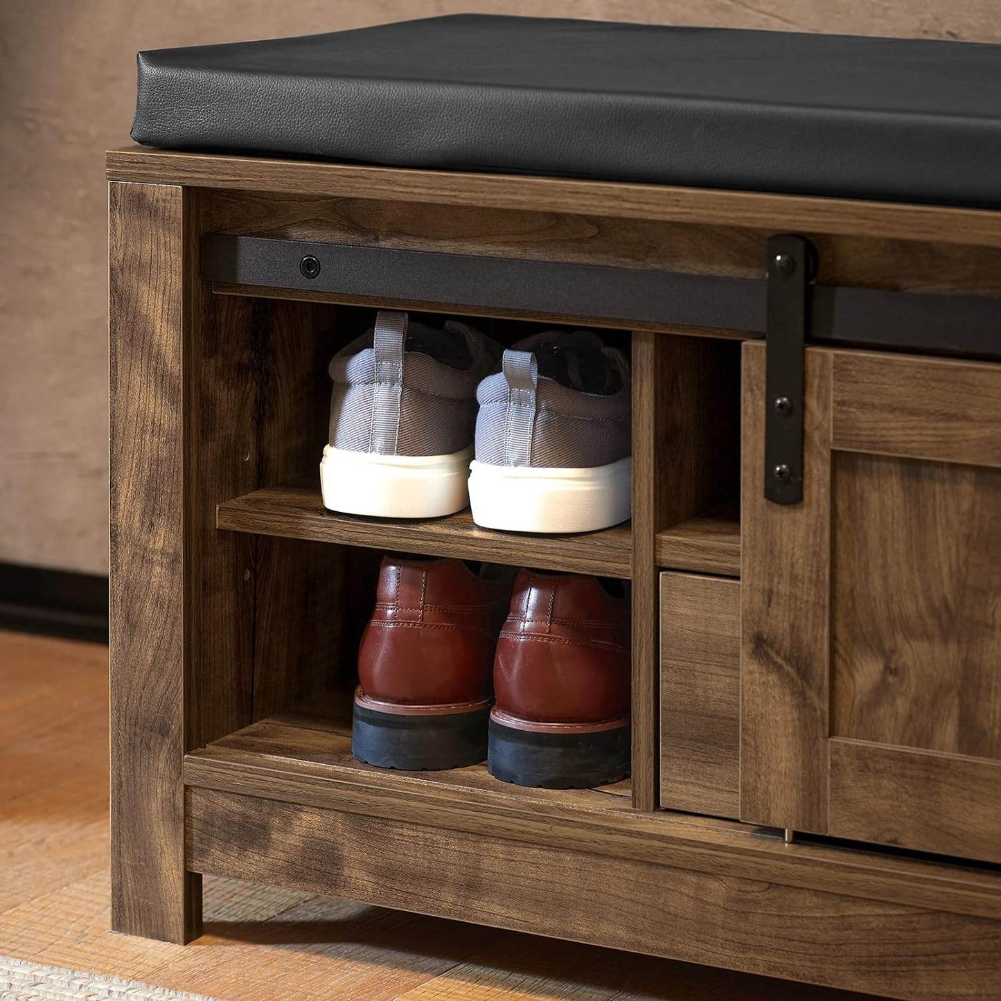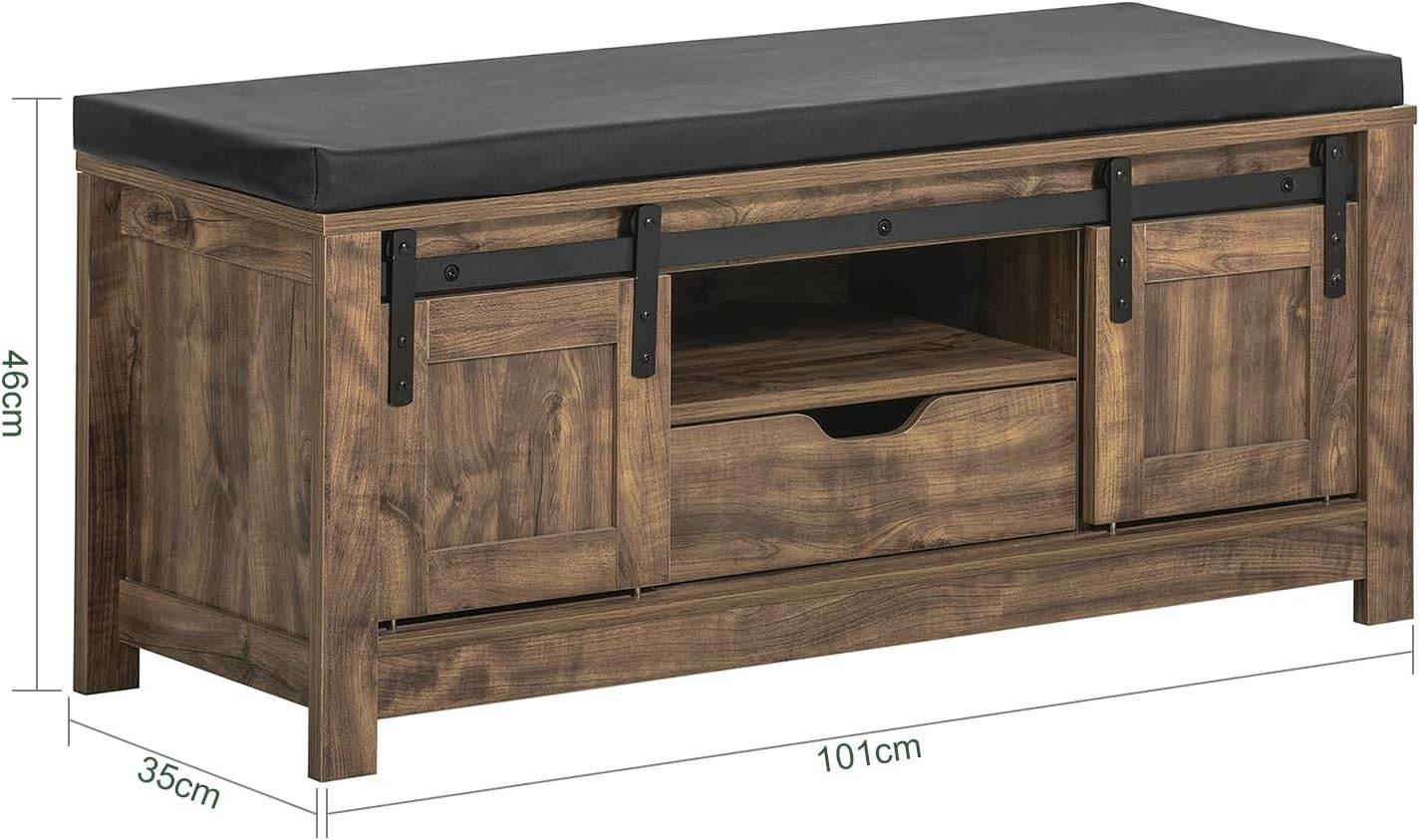 - Die Schuhbank verfügt über zwei Fächer, jedes mit einer Schiebetür, die ausreichend Platz für das Ordnen Ihrer Schuhe bieten; Mit höhenverstellbare Einlegeböden