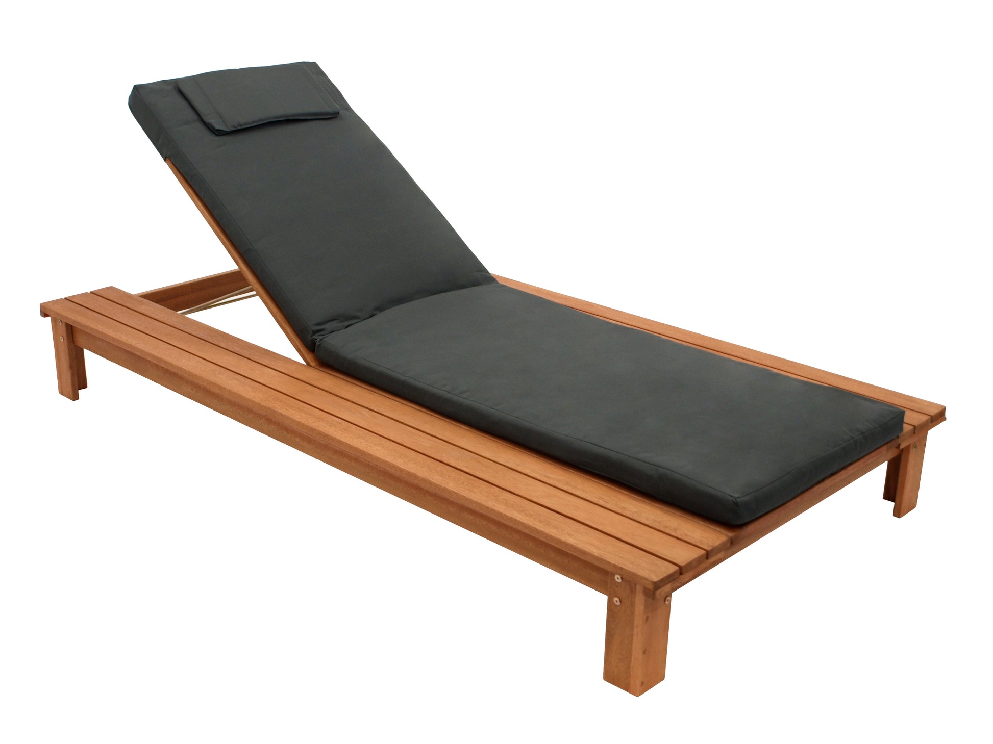 Gartenliege CANCUN, Eukalyptus geölt, mit Auflage dunkelgrau, FSC®-zertifiziert