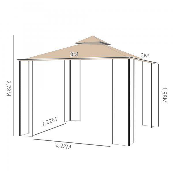 Gönnen Sie Ihrem Garten ein stylisches Upgrade mit diesem luxuriösen Gartenpavillon von Outsunny! Er überzeugt durch das stabile Gestell aus pulverbeschichtetem Metall sowie das ausgeklügelte Doppeldach aus wasserabweisendem Polyester, das sowohl Schutz vor Regen und Sonneneinstrahlung als auch angenehme Luftzirkulation bietet. Regenwasser wird elegant über die acht integrierten Ösen am Dachrand abgeleitet und die Seitenwände aus Netzstoff schützen Sie vor lästigen Insekten.