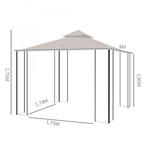 Unter diesem luxuriösen Gartenpavillon von Outsunny im stilvollen Design fühlt man sich bei jedem Anlass im Grünen wohl! Dieser Gartenpavillon zeichnet sich durch das starke Metallgestell und zudem das wasserabweisende, praktische Doppeldach aus, das für sowohl gute Witterungsbeständigkeit als auch ideale Belüftung sorgt. Die Seitenwände können variabel geöffnet oder geschlossen werden und dienen hervorragend als Schutz vor Insekten.
