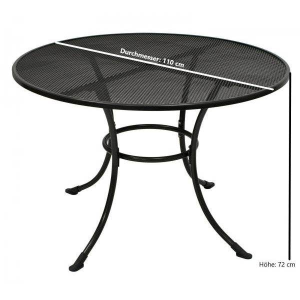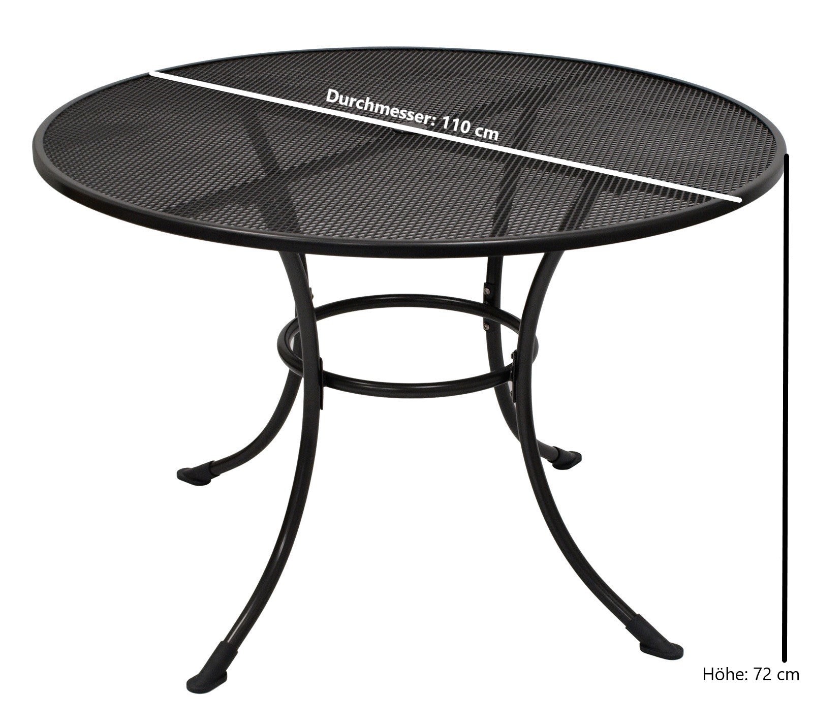 Streckmetalltisch 110cm rund mit stabilem Rundrohrgestell, Farbe: eisengrau.