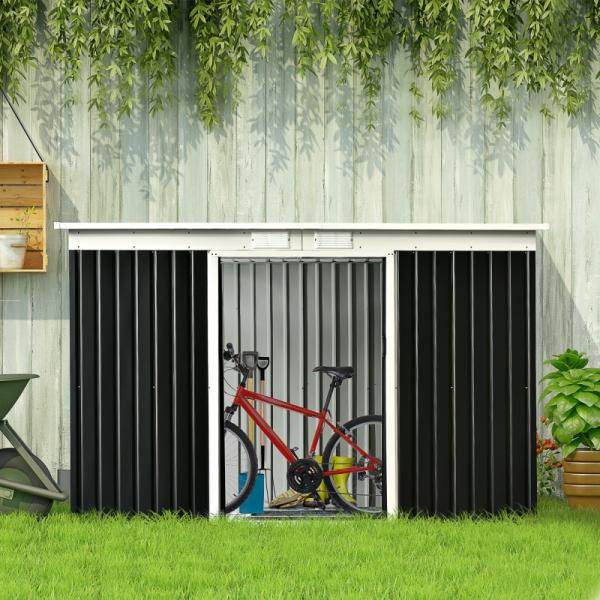 Ob Rasenmäher, Gartenwerkzeuge oder Gartenmöbel - der Geräteschuppen hält alles trocken und sauber. Die solide Konstruktion aus beschichtetem Metall ist wetterbeständig und schmutzabweisend. Die praktischen Schiebetüren ermöglichen jederzeit einen einfachen Zugang ins Innere. Dank der zwei Lüftungsgitter wird der Gartenschuppen gut belüftet, sodass sich keine Feuchtigkeit oder unangenehme Gerüche bilden können. Mit diesem Geräteschuppen von Outsunny fällt Ordnung halten leicht.