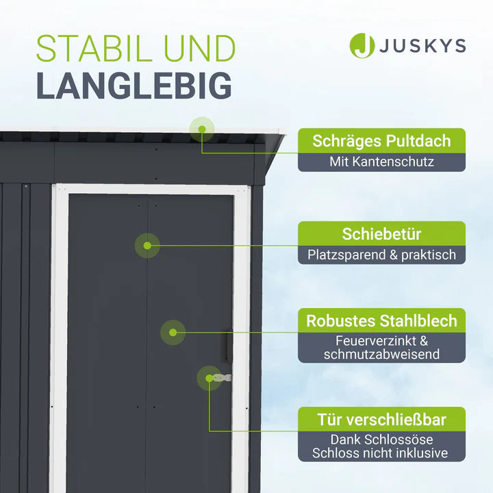- Modern gehaltener Metallschuppen mit Pultdach & Kantenschutz