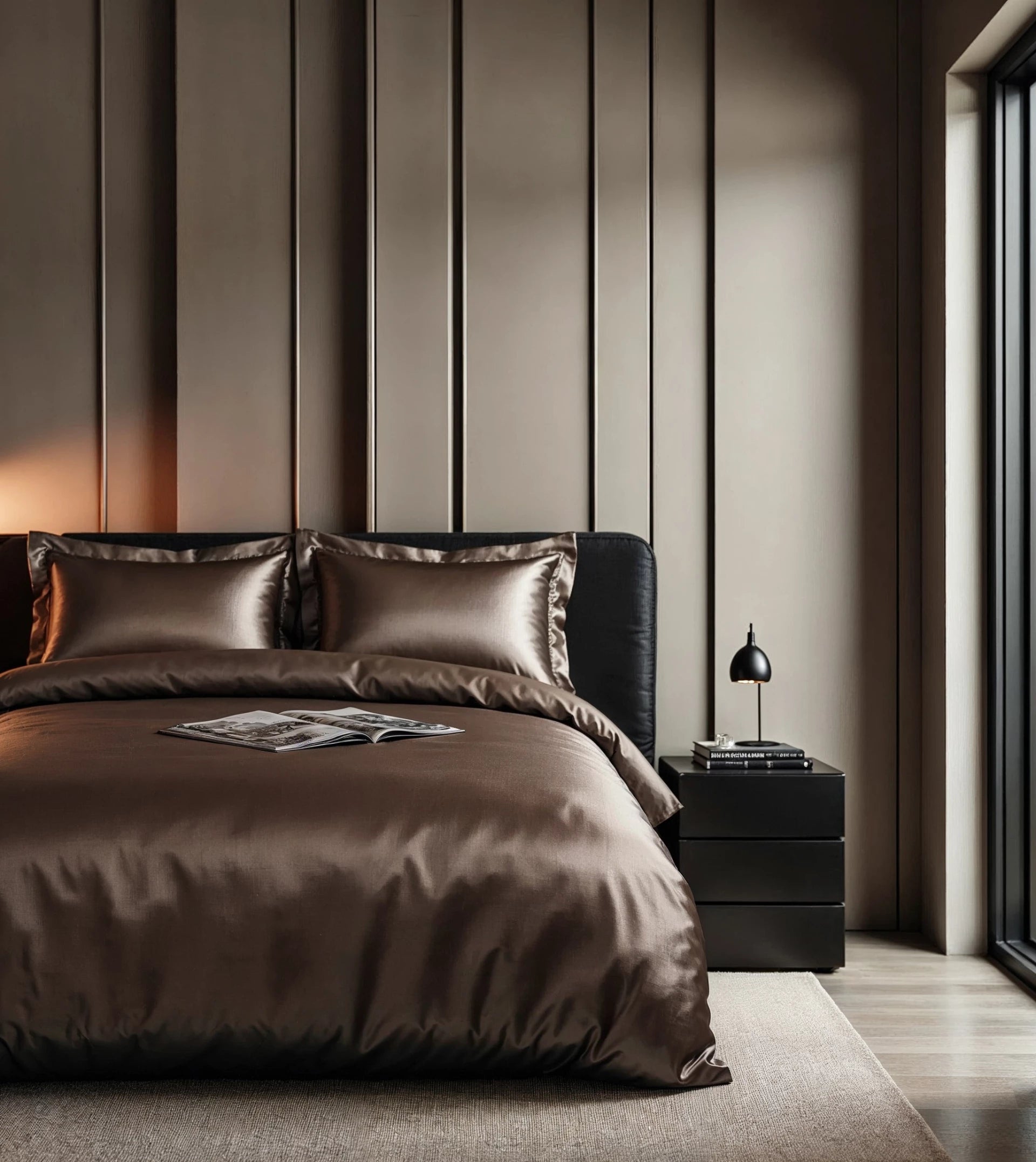 Die Oberseite besteht aus 100 % Polyester-Glanzsatin, was ihr einen schönen Glanz und eine seidig-weiche Textur verleiht. Die Unterseite aus atmungsaktiver Mikrofaser bietet zusätzlichen Komfort und Halt während der Nacht.