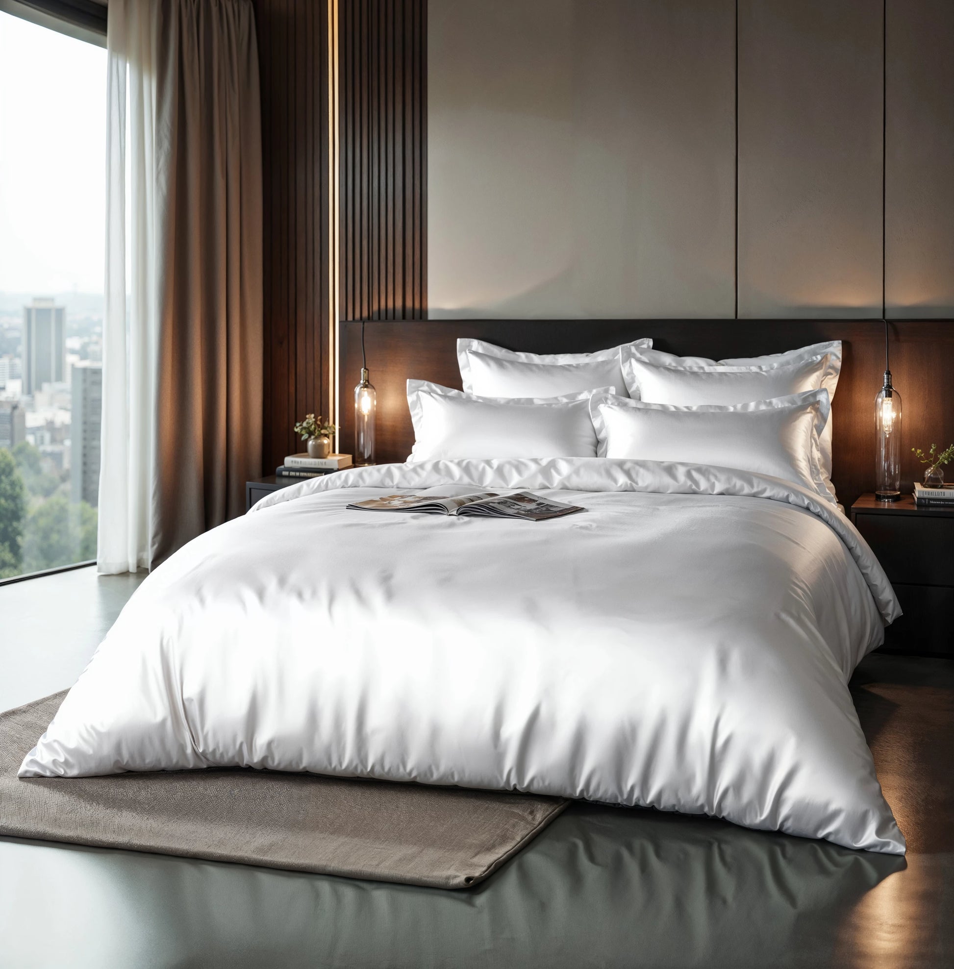 Verleihen Sie Ihrem Schlafzimmer mit dem Sleeptime Gloss Satin Bettbezug einen eleganten Look. Die Kombination aus glänzendem Satin und hochwertiger Verarbeitung schafft ein luxuriöses Ambiente und ein unvergleichliches Schlaferlebnis.