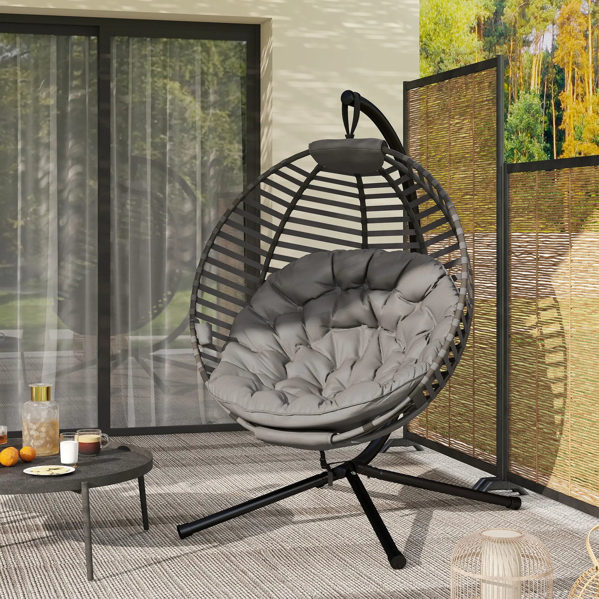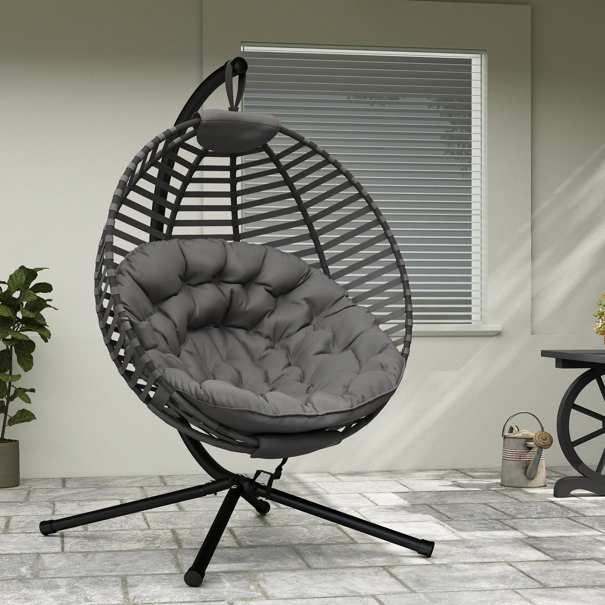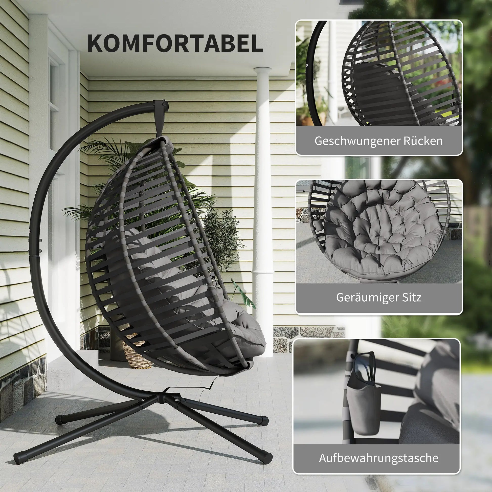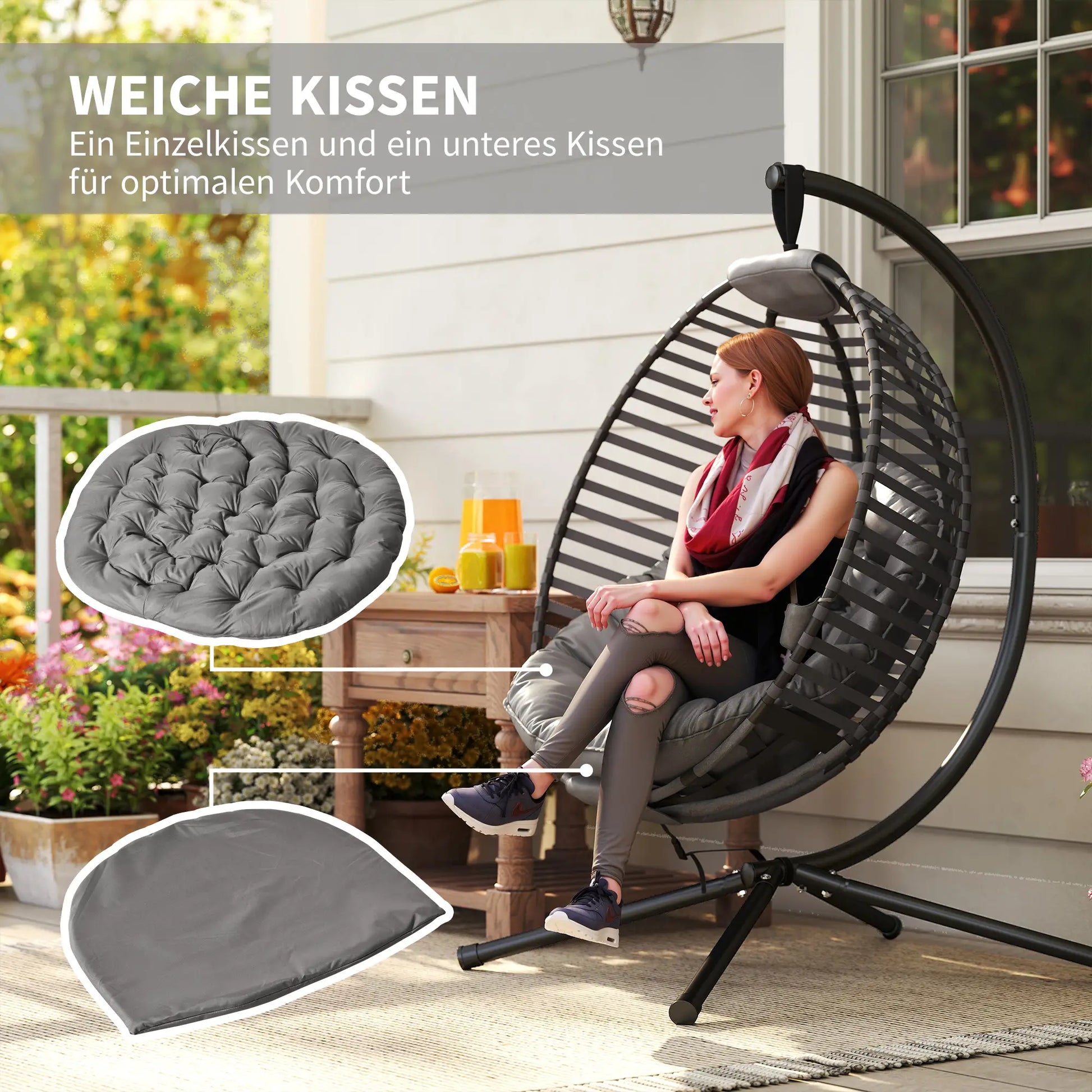 Verbringen Sie den Tag wie auf Wolken in diesem Hängesessel von Outsunny! Die geschwungene Rückenlehne, die geräumige Sitzfläche und das weiche Kissen bieten ein ausgesprochen komfortables Sitzerlebnis. Das Gestell ist aus Stahl gefertigt und kann bis zu 120 kg tragen, sodass Sie ihn sorgenfrei nutzen können. Der faltbare Sitzkorb erlaubt eine platzsparende und bequeme Verstauung. Verschönern Sie Ihren Innen- oder Außenbereich mit diesem markanten Design-Sessel.