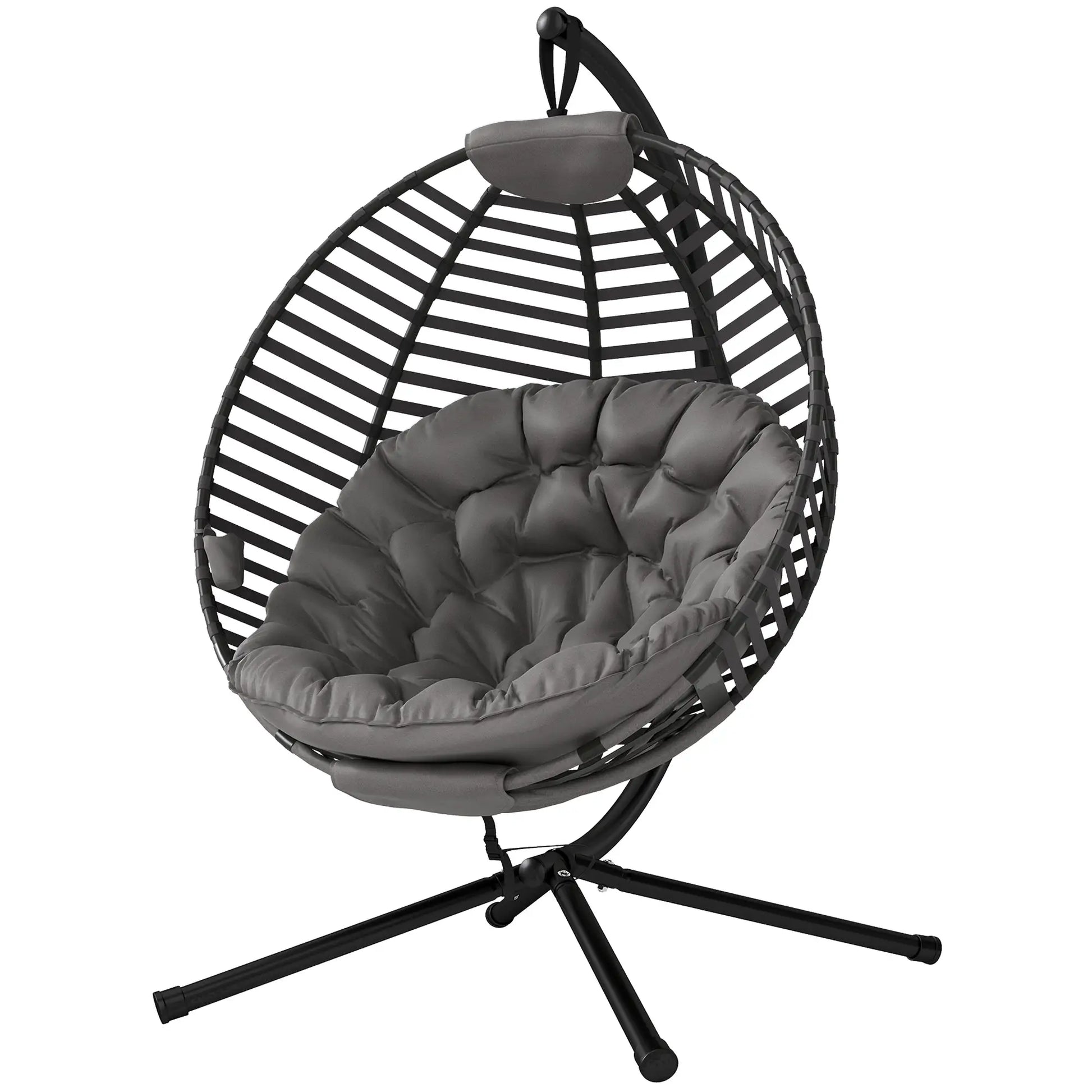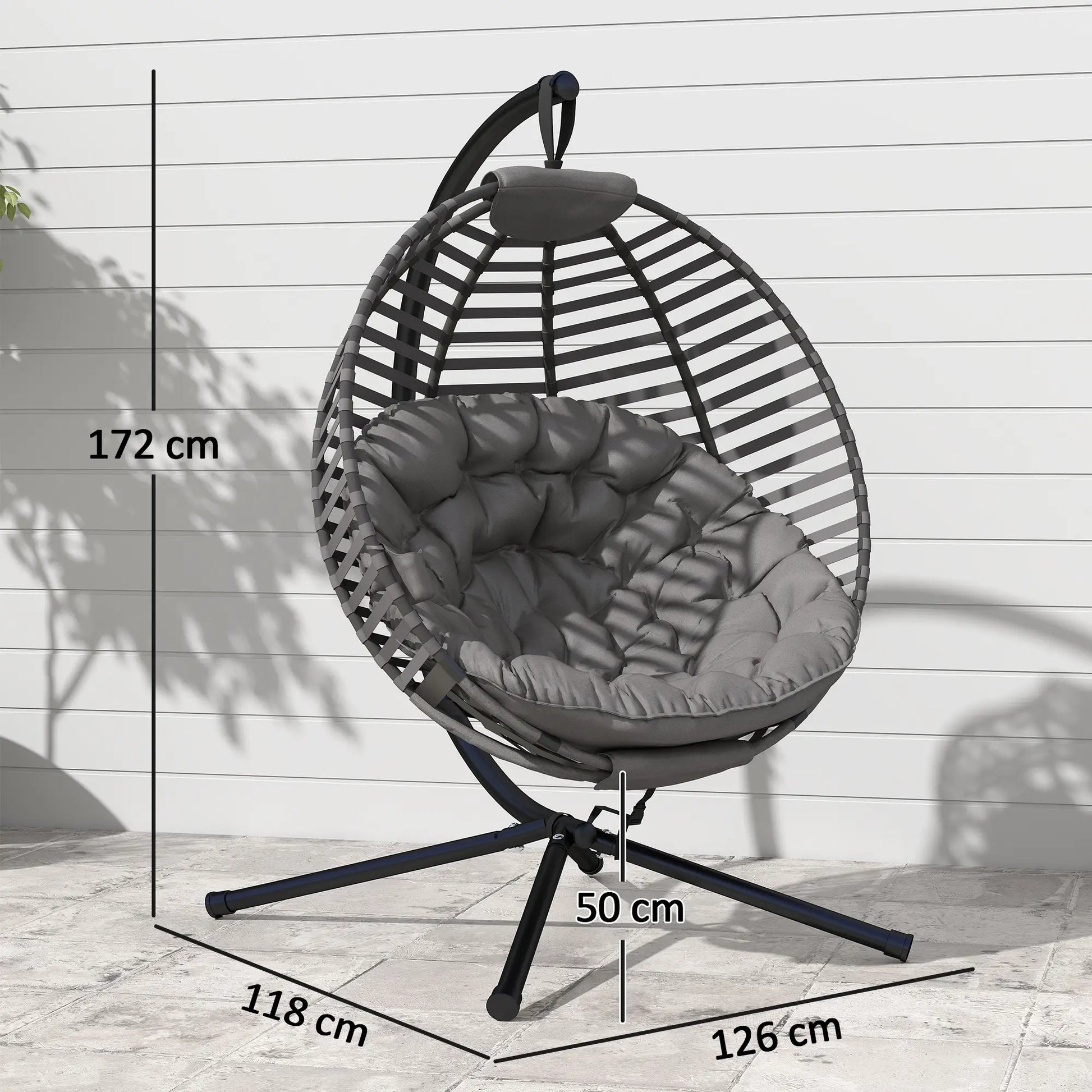 Hängesessel Hängekorb mit Gestell für 2 Personen faltbar Grau