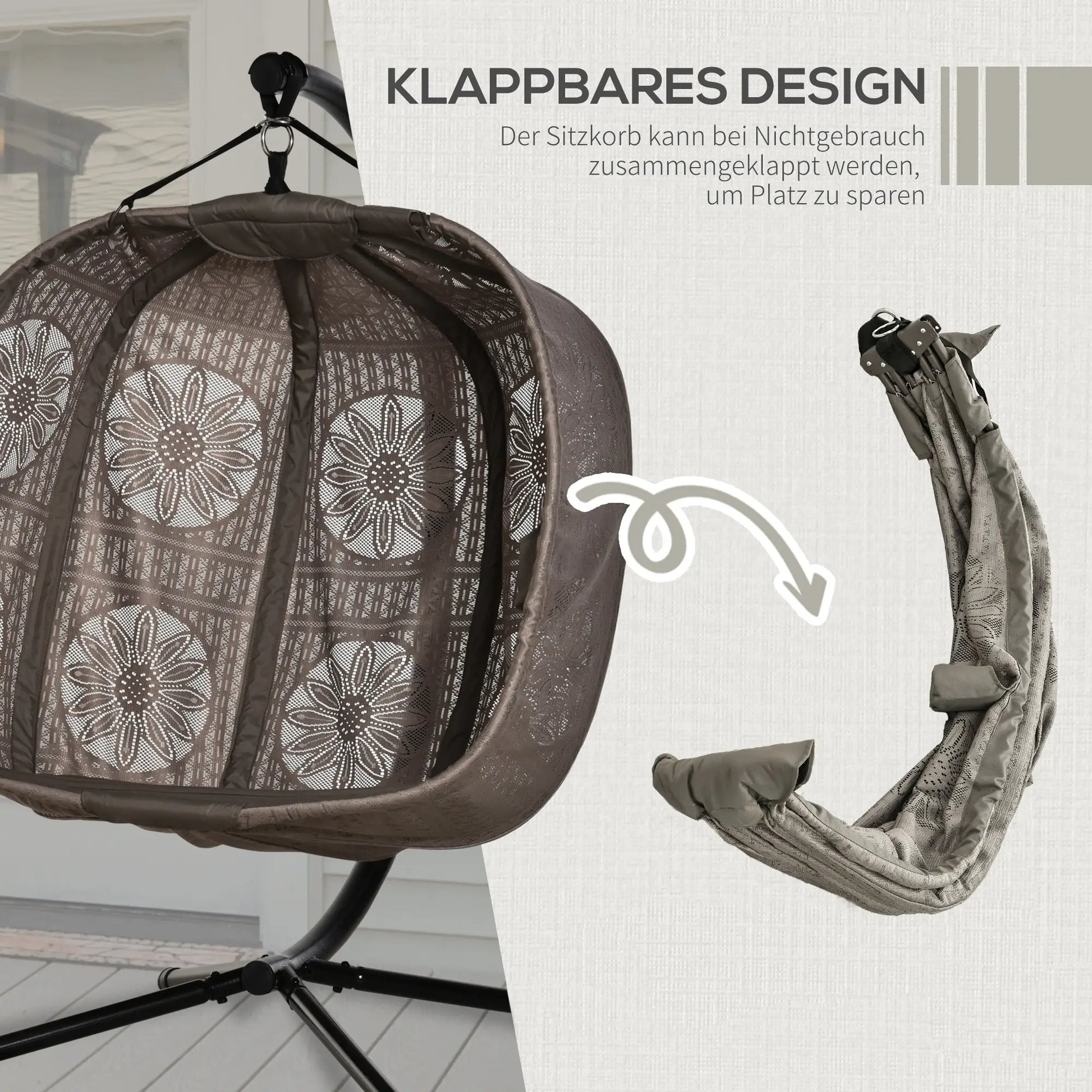 Lassen Sie schwebende Gemütlichkeit in Ihren Alltag einkehren mit diesem Zweisitz-Hängesessel von Outsunny. Das hängende Gestell ist aus Stahl gefertigt und hält bis zu 240 kg aus, sodass Sie es ohne Bedenken nutzen können. Ein raffiniertes Klappdesign erlaubt Ihnen eine praktische und platzsparende Verstauung. Mit diesem hängenden Gartenstuhl bringen Sie nicht nur mehr Eleganz in Ihre Innen- und Außenbereiche, sondern sitzen wie auf Wolken!