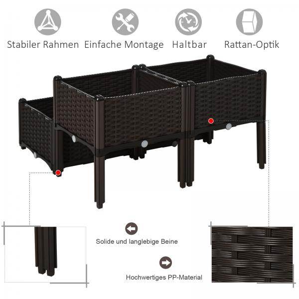 Hochbeet, 4-teiliger Pflanzkasten mit Abflusslöchern, Blumenkasten