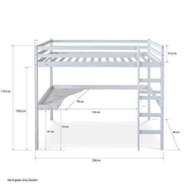 Hochbett Kinderbett 90x200 weiß Schreibtisch Spielbett