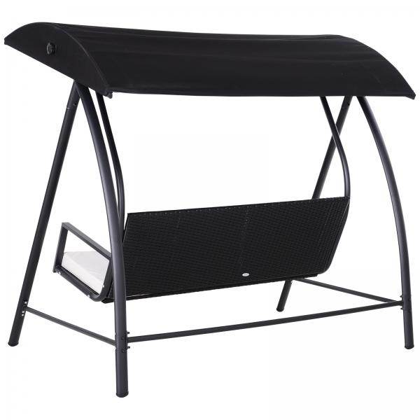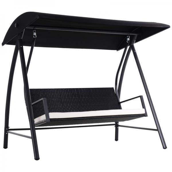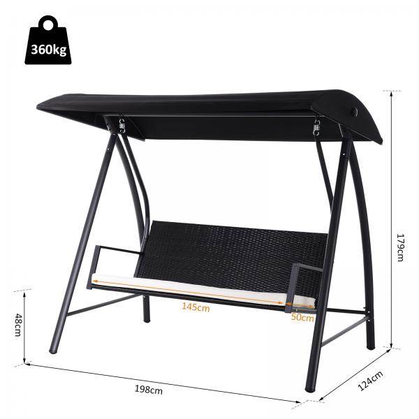 Hollywoodschaukel 3-Sitzer mit Dach Polyrattan Schwarz