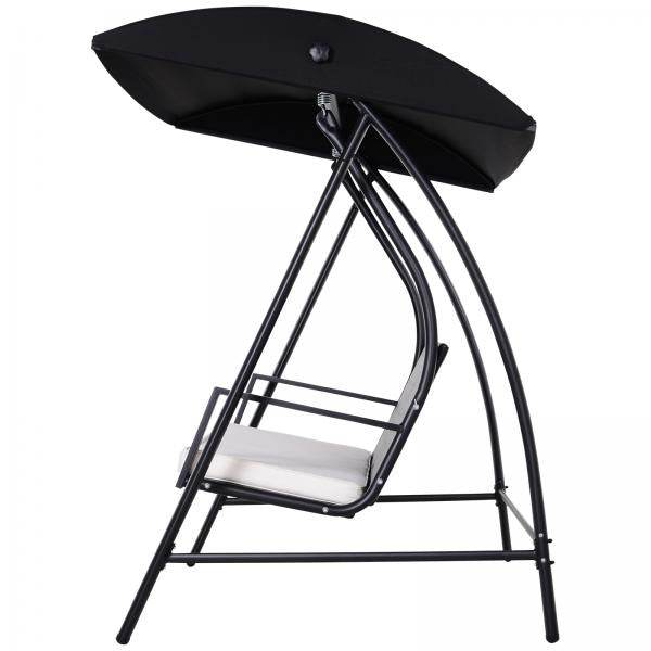 Bereichern Sie Ihren Garten mit diesem bequemen, modernen Schaukelstuhl von Outsunny! Das robuste Material und das hochstabile Metallgestell machen diese Schaukel wetterfest, äußerst belastbar und für den dauerhaften Einsatz im Freien geeignet. Das praktische Sonnensegel bietet Sicherheit an hellen Sommertagen und ermöglicht es Ihnen, mit bis zu zwei Personen im angenehmen Schatten zu entspannen. So kann der Sommer kommen!